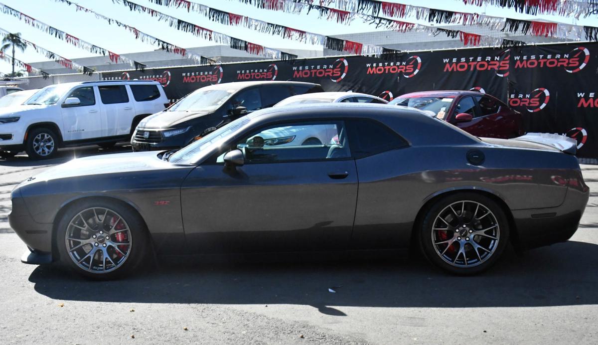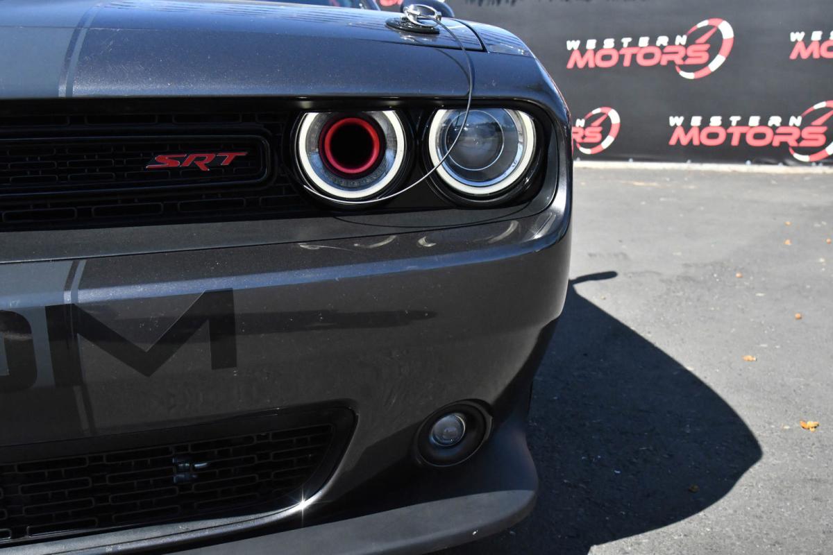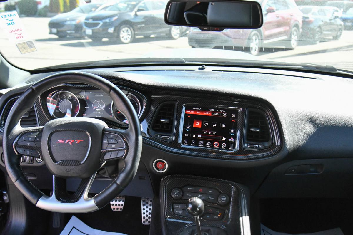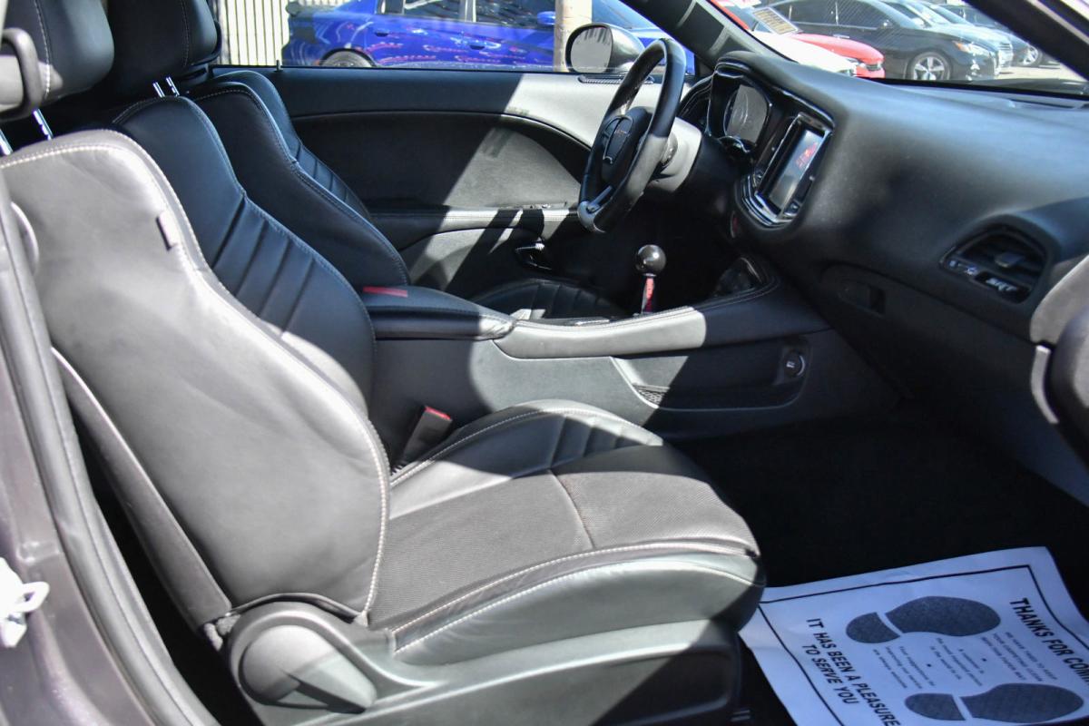 KBB.com Best Buy Awards Finalist. Only 52,077 Miles! Scores 23 Highway MPG and 14 City MPG! This Dodge Challenger delivers a Premium Unleaded V-8 6.4 L/392 engine powering this Manual transmission. TWIN BLACK CENTER STRIPES, TRANSMISSION: 6-SPEED MANUAL TREMEC (STD), TIRES: P275/40ZR20 P ZERO SUMMER.*This Dodge Challenger Features the Following Options *QUICK ORDER PACKAGE 23K -inc: Engine: 6.4L V8 SRT HEMI, Transmission: 6-Speed Manual Tremec , TECHNOLOGY GROUP -inc: Rain Sensitive Windshield Wipers, Auto High Beam Headlamp Control, RADIO: UCONNECT 8.4 NAV -inc: HD Radio, 1 Yr, Trial (Registration Required), 5-Year SiriusXM Travel Link Service, GPS Navigation, 5-Year SiriusXM Traffic Service, SiriusXM Travel Link, SiriusXM Traffic, MANUFACTURER'S STATEMENT OF ORIGIN, GRANITE CRYSTAL METALLIC CLEARCOAT, FRONT LICENSE PLATE BRACKET, ENGINE: 6.4L V8 SRT HEMI (STD), BLACK, LAGUNA PERFORMANCE SEATS W/SRT EMBOSSED LOGO, Window Grid Antenna, Wheels: 20 x 9.5 SRT Hyper Black Forged.*The Experts' Verdict...*As reported by The Manufacturer Summary: 1971 looks even better the second time around thanks to the new 2015 Dodge Challenger. The iconic heritage-inspired split grille surround and aggressive brow designs are back with attitude and new projector headlamps with quad LED halo surrounds with available projector fog lamps. The functional, performance-tuned exterior retains the Challenger design heritage with not-so-subtle air-gulping hood inlet, functional front splitter, rear spoiler and dual chrome exhaust outlets. The interior has been completely redesigned around the driver. The Tic-Toc-Tach retro-style gauges flank the new class-exclusive 7-inch reconfigurable digital cluster display. It provides a multitude of vehicle information displays, including 0-60 time, reaction time, and g-force meter. Adjust the performance of the engine, transmission, steering response and traction control with configurable drive modes on performance pages, view 3-D navigation guidance and take advantage of Pandora, Yelp, your own WiFi Hotspot, as well as other great apps from the new class-exclusive available 8.4-inch Uconnect Touchscreen. There are three paths to relentless power: a 305hp 3.6L Pentastar V6 engine, the available 375hp 5.7L HEMI V8 engine or the new available 6.4L HEMI V8 engine with an estimated 485hp. A new electronic sport shifter is paired to the new class-exclusive TorqueFlite eight-speed automatic transmission+ with AutoStick. Or choose the six-speed manual transmission, standard with the 5.7L HEMI V8 engine, and shift the gears yourself. SRT versions of the Challenger are available as well in the form of the Challenger SRT 392 as well as the Challenger SRT Hellcat which is the fastest and most powerful muscle car ever produced with a 707hp Supercharged 6.2L V8.