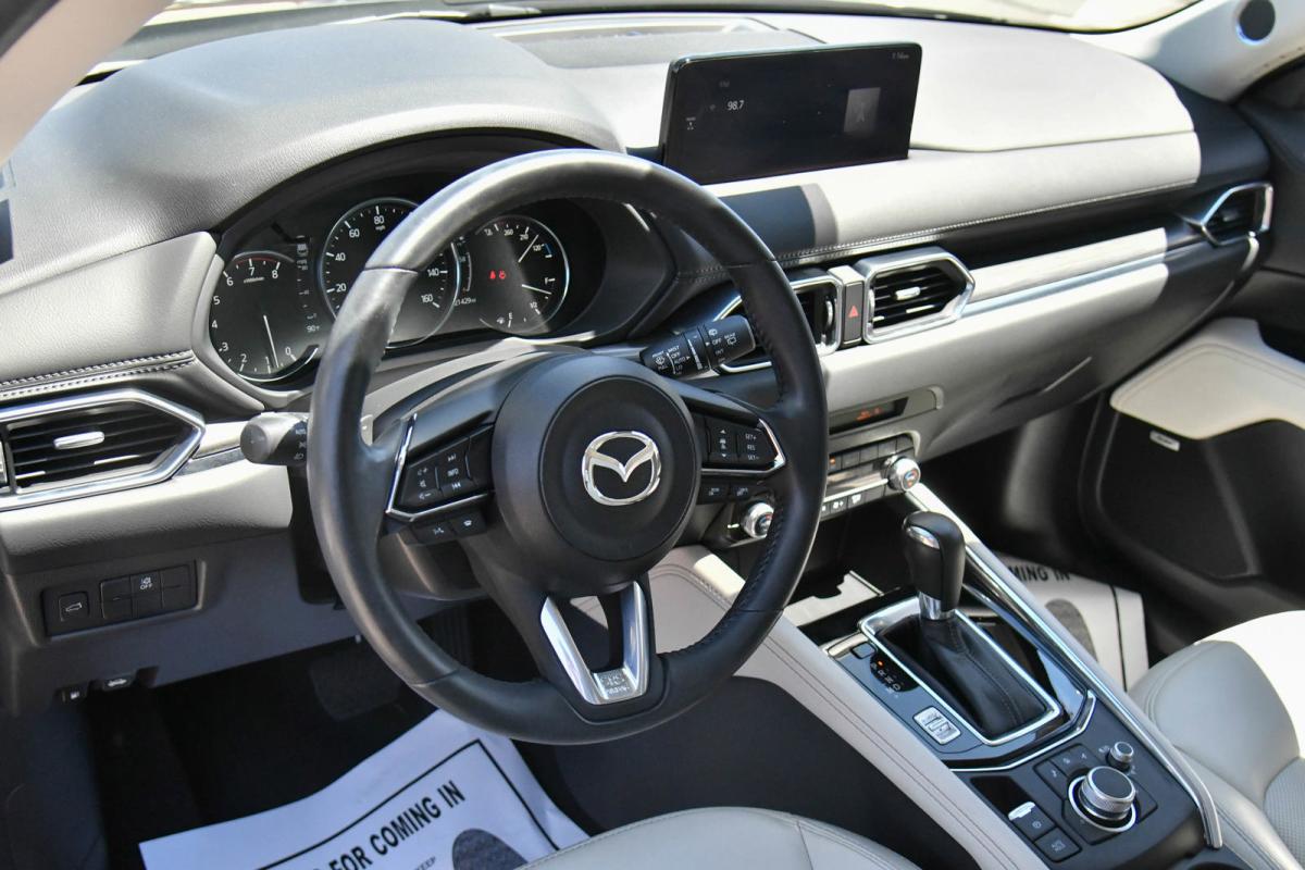 Only 21,419 Miles! Scores 30 Highway MPG and 24 City MPG! This Mazda CX-5 boasts a Regular Unleaded I-4 2.5 L/152 engine powering this Automatic transmission. WHEEL LOCKS, ROOF RACK SIDE RAILS, PARCHMENT, LEATHER SEAT TRIM.*This Mazda CX-5 Comes Equipped with These Options *MACHINE GRAY METALLIC PAINT, MACHINE GRAY METALLIC, ALL-WEATHER FLOOR MATS, Wheels: 19 x 7J Aluminum Alloy -inc: black metallic finish w/machine cut, Trip Computer, Transmission: 6-Speed SKYACTIV-Drive Automatic -inc: manual-shift mode and sport mode, Transmission w/Sequential Shift Control w/Steering Wheel Controls and Oil Cooler, Tracker System, Tires: P225/55R19 AS, Tailgate/Rear Door Lock Included w/Power Door Locks.