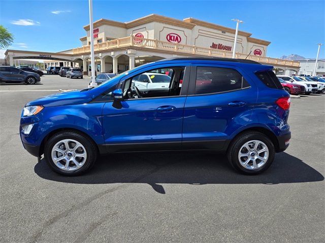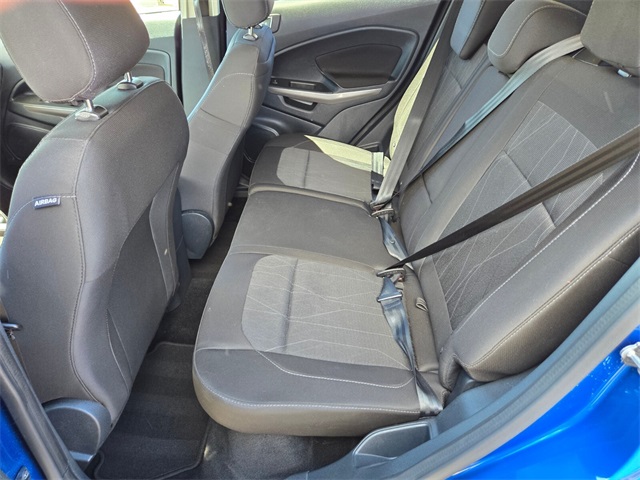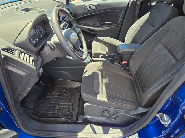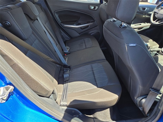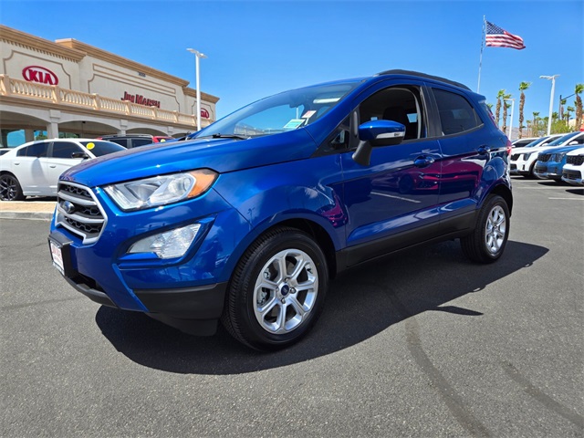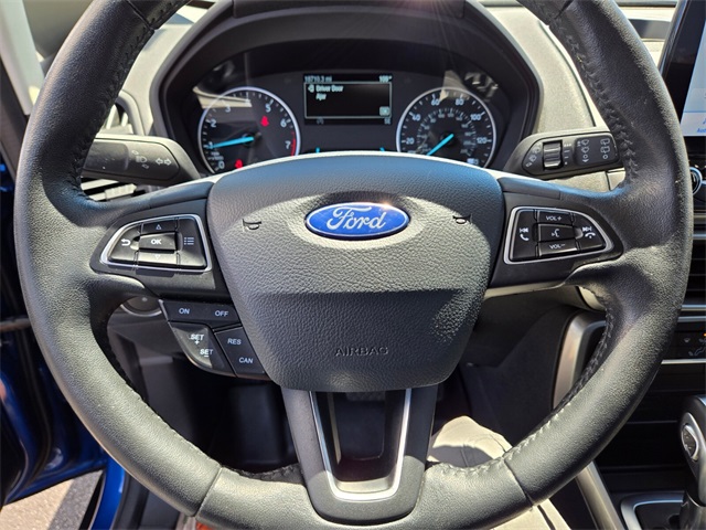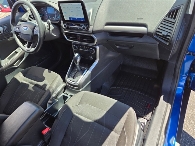 Recent Arrival!Odometer is 30631 miles below market average!27/29 City/Highway MPGLightning Blue 2020 Ford EcoSport SE FWD 6-Speed Automatic EcoBoost 1.0L I3 GTDi DOHC Turbocharged VCTIf you don't drive here, you can't save here!Price may not include recon fee. Equipment Group 200A, 3.44 Axle Ratio, 4-Wheel Disc Brakes, 6 Speakers, ABS brakes, Air Conditioning, Alloy wheels, AM/FM radio: SiriusXM, AppLink/Apple CarPlay and Android Auto, Automatic temperature control, Brake assist, Bumpers: body-color, Compass, Delay-off headlights, Driver door bin, Driver vanity mirror, Dual front impact airbags, Dual front side impact airbags, Electronic Stability Control, Emergency communication system: SYNC 3 911 Assist, Exterior Parking Camera Rear, Front anti-roll bar, Front Bucket Seats, Front Center Armrest, Front fog lights, Front reading lights, Front wheel independent suspension, Fully automatic headlights, Heated front seats, Illuminated entry, Knee airbag, Leather Shift Knob, Leather steering wheel, Low tire pressure warning, Occupant sensing airbag, Outside temperature display, Overhead airbag, Overhead console, Panic alarm, Passenger door bin, Passenger vanity mirror, Power door mirrors, Power driver seat, Power moonroof, Power steering, Power windows, Radio data system, Radio: AM/FM Stereo w/MP3 Capable, Rear Parking Sensors, Rear seat center armrest, Rear side impact airbag, Rear window defroster, Rear window wiper, Remote keyless entry, Roof rack: rails only, SiriusXM Radio, Speed control, Speed-sensing steering, Split folding rear seat, Steering wheel mounted audio controls, SYNC 3 Communications & Entertainment System, Tachometer, Telescoping steering wheel, Tilt steering wheel, Tire Inflator & Sealant Kit, Traction control, Trip computer, Turn signal indicator mirrors, Unique Cloth Heated Front Bucket Seats, Variably intermittent wipers, and Wheels: 16" Shadow Silver-Painted Aluminum.