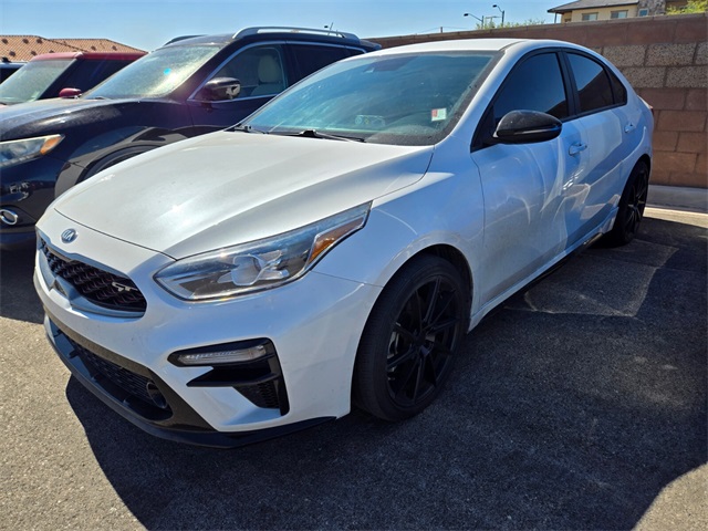 Priced below KBB Fair Purchase Price!Snow White Pearl 2021 Kia Forte GT FWD 1.6L 4-CylinderIf you don't drive here, you can't save here!Awards: * JD Power Initial Quality Study (IQS)Price may not include recon fee. 4-Wheel Disc Brakes, ABS brakes, Air Conditioning, Alloy wheels, AM/FM radio: SiriusXM, Apple CarPlay & Android Auto, Auto High-beam Headlights, Brake assist, Bumpers: body-color, Cloth & Leatherette Seat Trim, Delay-off headlights, Driver door bin, Driver vanity mirror, Dual front impact airbags, Dual front side impact airbags, Electronic Stability Control, Emergency communication system: UVO eServices, Exterior Parking Camera Rear, Four wheel independent suspension, Front anti-roll bar, Front Bucket Seats, Front Center Armrest, Front fog lights, Front reading lights, Front Sport Seats, Fully automatic headlights, Heated door mirrors, Illuminated entry, Lane Departure Warning System, Leather steering wheel, Low tire pressure warning, Occupant sensing airbag, Outside temperature display, Overhead airbag, Overhead console, Panic alarm, Passenger door bin, Passenger vanity mirror, Power door mirrors, Power steering, Power windows, Radio data system, Rear anti-roll bar, Rear seat center armrest, Rear window defroster, Remote keyless entry, Security system, Speed control, Split folding rear seat, Spoiler, Sport steering wheel, Steering wheel mounted audio controls, Tachometer, Telescoping steering wheel, Tilt steering wheel, Traction control, Trip computer, Turn signal indicator mirrors, Variably intermittent wipers, and Wheels: 18" Machine Finish Alloy.