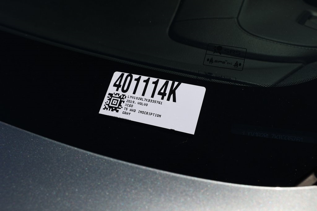 Osmium Gray Metallic 2019 Volvo XC60 T5 Inscription AWD Automatic with Geartronic I4 AWD, 14 Speakers, Air Conditioning, Apple CarPlay/Android Auto, Brake assist, Electronic Stability Control, Exterior Parking Camera Rear, harman/kardon Premium Sound, harman/kardon® Speakers, Leather Seating Surfaces, Memory seat, Navigation system: Sensus Navigation, Power Liftgate, Power moonroof, Rear air conditioning.20/27 City/Highway MPG