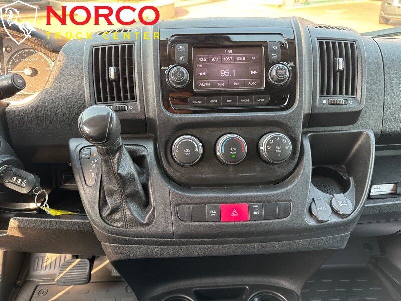 -- INSTALLED FEATURES: Air filtration, Front air conditioning, Front air conditioning zones: single, Airbag deactivation: occupant sensing passenger, Front airbags: dual, Side airbags: front, Side curtain airbags: front, Antenna type: mast, Auxiliary audio input: Bluetooth / USB / jack, Radio: AM/FM / touch screen display / voice operated, Total speakers: 4, ABS: 4-wheel, Braking assist, Electronic brakeforce distribution, Front brake diameter: 11.8, Front brake type: ventilated disc, Front brake width: 1.26, Power brakes, Rear brake diameter: 11.0, Rear brake type: ventilated disc, Rear brake width: .63, Armrests: drivers seat, Floor material: rubber/vinyl, Shift knob trim: urethane, Steering wheel trim: urethane, Assist handle: front, Cargo area light, Cupholders: front, Multi-function remote: keyless entry / trunk release, One-touch windows: 2, Power outlet(s): 12V front, Power steering, Reading lights: front, Rearview mirror: manual day/night, Steering wheel: telescopic, Steering wheel mounted controls: audio / phone, Storage: cargo tie-down anchors and hooks / door pockets / in dash, Sun visors, Axle ratio: 3.86, Alternator: 180 amps, Auxiliary oil cooler, Battery rating: 800 CCA, Battery saver, Emissions: 50 state, Body side moldings: black, Bumper detail: rear step, Door handle color: black, Front bumper color: black, Grille color: black / chrome surround, Mirror color: black, Rear bumper color: black, Rear trunk/liftgate: barn, Side door type: passenger-side manual sliding, Window trim: black, Infotainment: Uconnect, Infotainment screen size: 5 in., Clock, Digital odometer, External temperature display, Fuel economy display: MPG / range, Gauge: tachometer, Trip odometer, Warnings and reminders: low battery / low fuel level / low oil level / maintenance due, Clearance lights, Headlights: auto delay off / halogen, Side mirror adjustments: manual / manual folding, Side mirrors: integrated turn signals, OEM roof height: high, Camera system: rearview, Crumple zones: front, Rearview monitor: in dash, Emergency locking retractors: front, Front seatbelts: 3-point, Seatbelt force limiters: front, Seatbelt pretensioners: front, Seatbelt warning sensor: front, Driver seat manual adjustments: reclining / 4, Front headrests: adjustable / 2, Front seat type: bucket, Passenger seat manual adjustments: reclining / 4, Upholstery: cloth, Anti-theft system: vehicle immobilizer, Power door locks: auto-locking, Hill holder control, Roll stability control, Stability control, Traction control, Trailer stability control, Steering ratio: 18.9, Turns lock-to-lock: 3.9, Front shock type: gas, Front spring type: coil, Front stabilizer bar, Front struts: MacPherson, Front suspension classification: independent, Front suspension type: lower control arms, Rear shock type: gas, Rear spring type: leaf, Rear suspension classification: solid axle, Rear suspension type: multi-leaf, Driver assistance app: roadside assistance, Hands-free phone call integration: voice operated, Wireless data link: Bluetooth, Spare tire mount location: underbody, Spare tire size: full-size, Spare wheel type: steel, Tire Pressure Monitoring System, Tire type: all season, Wheel covers: partial, Wheels: steel, Auxiliary transmission fluid cooler, Front wipers: variable intermittent, Power windows, Solar-tinted glass