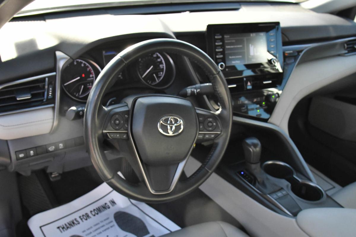 Delivers 39 Highway MPG and 28 City MPG! This Toyota Camry boasts a Regular Unleaded I-4 2.5 L/152 engine powering this Automatic transmission. Variable Intermittent Wipers, Urethane Gear Shifter Material, Trunk Rear Cargo Access.*This Toyota Camry Features the Following Options *Trip Computer, Transmission: 8-Speed Direct Shift ECT-i Automatic -inc: sequential shift mode and paddle shifters, Toyota Safety Sense (TSS) 2.5+, Tires: 235/45R18 AS, Tire Pressure Monitor System (TPMS) Tire Specific Low Tire Pressure Warning, Strut Front Suspension w/Coil Springs, Steel Spare Wheel, Single Stainless Steel Exhaust w/Polished Tailpipe Finisher, Side Impact Beams, Seats w/Leatherette Back Material.