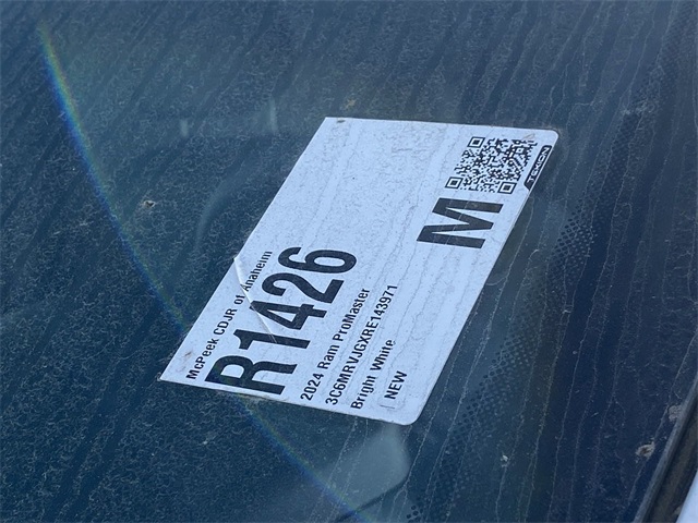 Bright White Clearcoat 2024 Ram ProMaster 3500 High Roof FWD 9-Speed 948TE Automatic 3.6L V6 24V VVT INTERIOR & EXTERIOR PROFESSIONALLY DETAILED FOR DELIVERY, MCPEEK CHRYSLER DODGE JEEP RAM FAMILY OWNED AND OPERATED SINCE 1961 !!!!!.All prices are subject to change without notice. All vehicles subject to prior sale. Advertised price does not include Dealer Installed Accessories or Commercial Bed/Body Upfits. Please contact dealer to receive the most up to date pricing information and complete details.