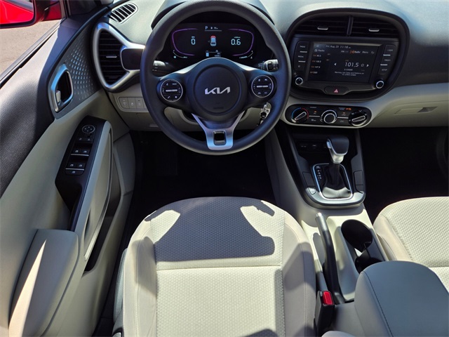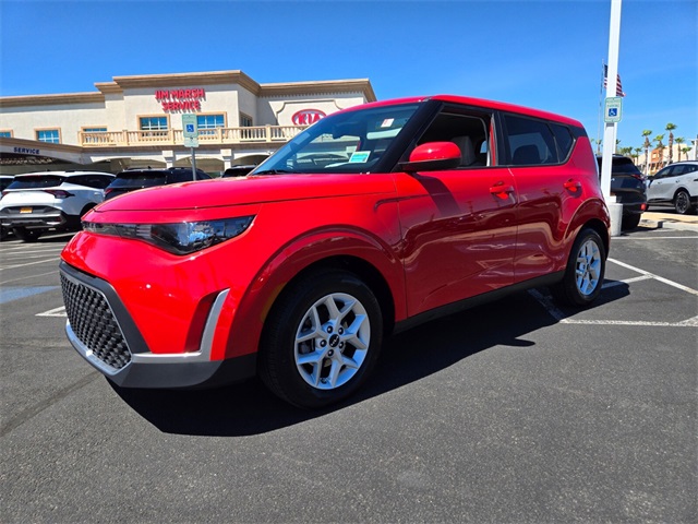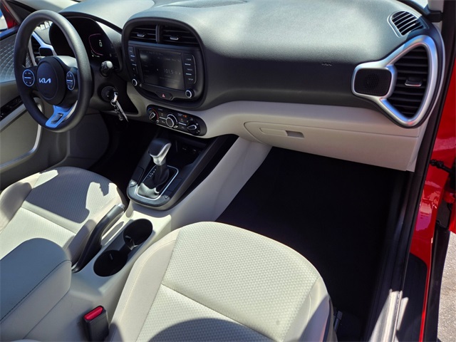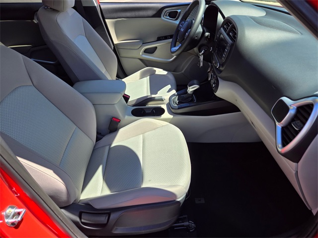 Odometer is 25904 miles below market average!29/35 City/Highway MPGInferno Red 2023 Kia Soul LX FWD CVT 2.0L I4 DOHCIf you don't drive here, you can't save here!Price may not include recon fee. LX Technology Package (16" Alloy Wheels, Blind-Spot Collision-Avoidance Assist, Lane Change Assist, and Rear Cross-Traffic Collision Avoidance Assist), 4-Wheel Disc Brakes, 6 Speakers, ABS brakes, Air Conditioning, Apple CarPlay & Android Auto, Auto High-beam Headlights, Brake assist, Bumpers: body-color, Carpeted Floor Mats, Compass, Delay-off headlights, Driver door bin, Driver vanity mirror, Dual front impact airbags, Dual front side impact airbags, Electronic Stability Control, Envelope Cargo Net, Exterior Parking Camera Rear, Front anti-roll bar, Front Bucket Seats, Front Center Armrest, Front reading lights, Front wheel independent suspension, Fully automatic headlights, Illuminated entry, Low tire pressure warning, Occupant sensing airbag, Outside temperature display, Overhead airbag, Overhead console, Panic alarm, Passenger door bin, Passenger vanity mirror, Power door mirrors, Power steering, Power windows, Radio data system, Radio: AM/FM/MP3/HD Audio System, Rear window defroster, Rear window wiper, Remote keyless entry, Speed control, Speed-sensing steering, Split folding rear seat, Steering wheel mounted audio controls, Tachometer, Telescoping steering wheel, Tilt steering wheel, Traction control, Trip computer, Variably intermittent wipers, and Woven & Tricot Cloth Seat Trim.