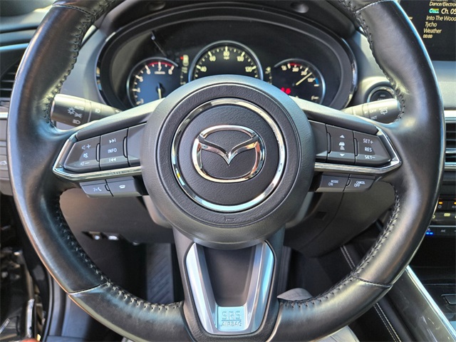 Recent Arrival!20/26 City/Highway MPGJet Black Mica 2021 Mazda CX-9 Grand Touring AWD 6-Speed Automatic 2.5L 4-Cylinder AWD.If you don't drive here, you can't save here!Price may not include recon fee. AWD, 12 Speakers, 2nd-Row Captain's Chairs, 3rd row seats: bench, 4-Wheel Disc Brakes, ABS brakes, Aha Internet Radio, Air Conditioning, Alloy wheels, AM/FM radio: SiriusXM, AppLink/Apple CarPlay and Android Auto, Auto High-beam Headlights, Auto-dimming Rear-View mirror, Automatic temperature control, Axle Ratio: 4.411, Brake assist, Bumpers: body-color, Compass, Delay-off headlights, Driver door bin, Driver vanity mirror, Dual front impact airbags, Dual front side impact airbags, E911 Automatic Emergency Notification, Electronic Stability Control, Emergency communication system: MAZDA CONNECT, Four wheel independent suspension, Front anti-roll bar, Front Bucket Seats, Front Center Armrest, Front dual zone A/C, Front fog lights, Front reading lights, Fully automatic headlights, Garage door transmitter: HomeLink, Heated door mirrors, Heated front seats, Heated rear seats, Heated steering wheel, Heated/Ventilated Front Bucket Seats, Illuminated entry, Infotainment System Voice Command, Leather Seat Trim, Leather Shift Knob, Leather steering wheel, Low tire pressure warning, Mazda Connected Services, Memory seat, Occupant sensing airbag, Outside temperature display, Overhead airbag, Overhead console, Pandora Internet Radio, Panic alarm, Passenger door bin, Passenger vanity mirror, Power door mirrors, Power driver seat, Power Liftgate, Power moonroof, Power passenger seat, Power steering, Power windows, Radio Broadcast Data System Program Information, Radio data system, Radio: AM/FM Sound System w/Bose Audio, Rain sensing wipers, Rear air conditioning, Rear anti-roll bar, Rear reading lights, Rear window defroster, Rear window wiper, Remote keyless entry, Roof Rack & Cross Bars, Roof rack: rails only, SiriusXM Satellite Radio, SMS Text Msg Audio Delivery & Reply, Speed control, Speed-sensing steering, Split folding rear seat, Spoiler, Steering wheel mounted audio controls, Stitcher Internet Radio, Tachometer, Telescoping steering wheel, Tilt steering wheel, Traction control, Trip computer, Turn signal indicator mirrors, Variably intermittent wipers, Ventilated front seats, and Wheels: 20" x 8.5J Aluminum Alloy.