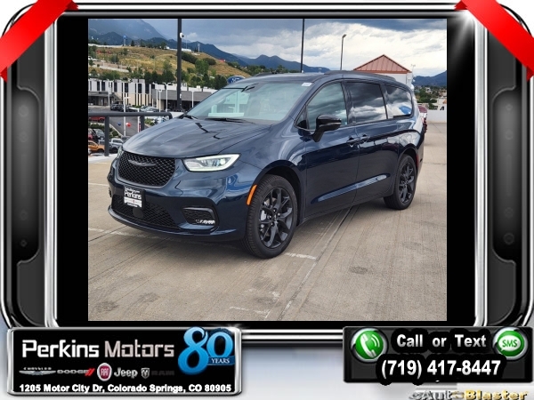 Factory MSRP: $60,295 $9,156 off MSRP! Fathom Blue Pearlcoat 2024 Chrysler Pacifica Limited AWD 9-Speed 948TE Automatic 3.6L V6 24V VVT<br><br>Check us out at www.perkinsmotors.com to see our specials! Since opening our doors in 1944, we’ve been proud to serve Colorado Springs, CO, and the surrounding areas of Pueblo, Castle Rock and Denver, CO. Throughout this time of being family owned for 80 years, we’ve maintained a firm commitment to our customers: to offer a wide selection of New Chrysler, Dodge, Fiat, Jeep, and Ram vehicles and quality pre-owned vehicles, and provide a quick, no-hassle car-buying process that ensures everyone drives off the lot satisfied with their purchase.<br><br>Quick Order Package 27P, S Appearance Package (Anodized Ink Badging, Black Day Light Opening Moldings, Black Stow 'N Place Roof Rack, Gloss Black Exterior Mirrors, Nappa Leather Bucket Seats w/S Logo, Piano Black Interior Accents, Premium Fascia Upper/Lower Grille w/Black Surround, Premium Rear Fascia Black, S Badge, and Wheels: 20 x 7.5 S-Model Aluminum Design 1), Safety Sphere (360 Surround View Camera System, Parallel & Perpendicular Park Assist w/Stop, and ParkSense Front/Rear Park Assist w/Stop), Uconnect Theater Family Group (115V Auxiliary Power Outlet, 19 harman/kardon Speakers w/Subwoofer, 3-Channel Video Remote Control, 3rd Row Remote Headrest Dumping, 760 Watt Amplifier, Amazon Fire TV Built-In, Blu-Ray/DVD Player/USB Port, FamCAM Interior Camera, Hands Free Sliding Doors, High Definition Multimedia Interface, Integrated Active Noise Cancellation, Power Folding 3rd Row Seat, Seatback Video Screens, Stow N Vac Integrated Vacuum, and Video USB Port), 13 Speakers, 3.73 Axle Ratio, 3rd row seats: split-bench, 4-Wheel Disc Brakes, ABS brakes, Air Conditioning, Alloy wheels, AM/FM radio: SiriusXM 360L, Apple CarPlay/Android Auto, Audio memory, Auto-dimming Rear-View mirror, Automatic temperature control, AWD Suspension, Black Seats, Brake assist, Bumpers: body-color, Compass, Cruise Control, Delay-off headlights, Driver door bin, Driver vanity mirror, Driver's Seat Mounted Armrest, Dual front impact airbags, Dual front side impact airbags, Electronic Stability Control, Emergency communication system: Chrysler Connect, Four wheel independent suspension, Front anti-roll bar, Front Bucket Seats, Front dual zone A/C, Front fog lights, Front reading lights, Fully automatic headlights, Garage door transmitter: HomeLink, Heated door mirrors, Heated front seats, Heated rear seats, Heated steering wheel, Illuminated entry, Knee airbag, Low tire pressure warning, Memory seat, Nappa Leather Bucket Seats, Navigation System, Occupant sensing airbag, Outside temperature display, Overhead airbag, Overhead console, Panic alarm, ParkView Rear Back-Up Camera, Passenger door bin, Passenger seat mounted armrest, Passenger vanity mirror, Power door mirrors, Power driver seat, Power Liftgate, Power moonroof, Power passenger seat, Power steering, Power windows, Radio data system, Radio: Uconnect 5 Nav w/10.1 Display, Rain sensing wipers, Rear air conditioning, Rear reading lights, Rear window defroster, Rear window wiper, Reclining 3rd row seat, Remote keyless entry, Security system, Split folding rear seat, Spoiler, Steering wheel mounted audio controls, Tachometer, Telescoping steering wheel, Tilt steering wheel, Traction control, Trip computer, Turn signal indicator mirrors, Variably intermittent wipers, Ventilated front seats, Voltmeter, and Wheels: 18 x 7.5 Painted Aluminum Design 2. Sale price includes all manufacture's incentives and dealer discounts. Sale price not available on lease or compatible with special APR. $2000 - 2024 Retail Bonus Cash. Exp. 09/03/2024 $500 - 2024 Bonus Cash . Exp. 09/03/2024 $3,000 - Exp. 09/30/2024