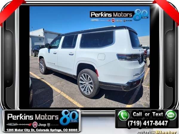 Bright White Clearcoat 4WD 3.0L I6 8-Speed Automatic<br><br>Heads-Up Display, Navigation System, Power moonroof, Quick Order Package 28S, Two Tone Paint Group.<br><br><br>CARFAX One-Owner. Clean CARFAX.<br><br>Check us out at www.perkinsmotors.com to see our specials! Since opening our doors in 1944, we’ve been proud to serve Colorado Springs, CO, and the surrounding areas of Pueblo, Castle Rock and Denver, CO. Throughout this time of being family owned for 80 years, we’ve maintained a firm commitment to our customers: to offer a wide selection of New Chrysler, Dodge, Fiat, Jeep, and Ram vehicles and quality pre-owned vehicles, and provide a quick, no-hassle car-buying process that ensures everyone drives off the lot satisfied with their purchase.<br><br><br>Quick Order Package 28S, Two Tone Paint Group, Heads-Up Display, Navigation System, Power moonroof, 19 Speakers, 3.92 Rear Axle Ratio, 3rd row seats: bench, 4-Wheel Disc Brakes, ABS brakes, Adaptive suspension, Adjustable pedals, Air Conditioning, Alloy wheels, AM/FM radio: SiriusXM with 360L, Anti-whiplash front head restraints, Audio memory, Auto High-beam Headlights, Auto-dimming door mirrors, Auto-dimming Rear-View mirror, Auto-leveling suspension, Automatic temperature control, Brake assist, Bumpers: body-color, Compass, Cruise Control, Delay-off headlights, Driver door bin, Driver vanity mirror, Driver's Seat Mounted Armrest, Dual front impact airbags, Dual front side impact airbags, Electronic Stability Control, Emergency communication system: Automatic SOS Call, Four wheel independent suspension, Front anti-roll bar, Front Bucket Seats, Front Center Armrest w/Storage, Front dual zone A/C, Front fog lights, Front reading lights, Fully automatic headlights, Garage door transmitter, Genuine wood console insert, Genuine wood dashboard insert, Genuine wood door panel insert, Heated door mirrors, Heated front seats, Heated rear seats, Heated steering wheel, Illuminated entry, Knee airbag, Leather steering wheel, Leather Trimmed Bucket Seats, Low tire pressure warning, Memory seat, Normal Duty Suspension, Occupant sensing airbag, Outside temperature display, Overhead airbag, Overhead console, Panic alarm, Passenger door bin, Passenger seat mounted armrest, Passenger vanity mirror, Pedal memory, Power adjustable front head restraints, Power door mirrors, Power driver seat, Power Liftgate, Power passenger seat, Power steering, Power windows, Radio data system, Radio: Uconnect 5 Nav w/12.0 Display, Rain sensing wipers, Rear air conditioning, Rear anti-roll bar, Rear dual zone A/C, Rear reading lights, Rear seat center armrest, Rear window defroster, Rear window wiper, Reclining 3rd row seat, Remote keyless entry, Security system, Speed-sensing steering, Speed-Sensitive Wipers, Split folding rear seat, Steering wheel memory, Steering wheel mounted audio controls, Tachometer, Telescoping steering wheel, Tilt steering wheel, Traction control, Trip computer, Turn signal indicator mirrors, Variably intermittent wipers, Ventilated front seats, Voltmeter, and Wheels: 22 x 9.0 Premium 1 Aluminum.