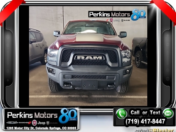 Delmonico Red Pearlcoat 4WD HEMI 5.7L V8 Multi Displacement VVT 8-Speed Automatic<br><br>1-Year SiriusXM Guardian Trial, 3.21 Rear Axle Ratio, 4x4 Flat Black Badge, 8.4 Touchscreen Display, Air Conditioning ATC w/Dual Zone Control, Apple CarPlay, Bi-Function Halogen Projector Headlamps, Black Door Handles, Black Exterior Truck Badging, Black Grille w/RAM Lettering, Black Headlamp Filler Panel, Black Powder Coated Front Bumper, Black Powder Coated Rear Bumper, Black RAM Head Tailgate Badge, Black Wheel Flares, Center Hub, Cluster 7.0 TFT Color Display, Dual Rear Exhaust w/Bright Tips, Electronics Group, Front LED Fog Lamps, Front Wheel Well Liners, Google Android Auto, HD Radio, Hood Decal, Media Hub (2 USB, AUX), MOPAR Front & Rear Rubber Floor Mats, ParkSense Rear Park Assist System, Quick Order Package 26F Warlock, Radio: Uconnect 4C w/8.4 Display, Raised Ride Height, Rear Extra HD Shock Absorbers, Remote keyless entry, Remote Start & Security Alarm Group, Remote Start System, Security Alarm, Semi-Gloss Black Hub, Sport Tail Lamps, Tow Hooks, USB Host Flip, Utility Group, Warlock, Warlock All Terrain Package, Warlock Decal, Warlock Decor Package (DISC), Warlock Interior Accents, Wheels: 17 x 8 Matte Black Aluminum, Wheels: 20 x 9 Semi-Gloss Black Aluminum.<br><br><br>CARFAX One-Owner. Clean CARFAX.<br><br>Check us out at www.perkinsmotors.com to see our specials! Since opening our doors in 1944, we’ve been proud to serve Colorado Springs, CO, and the surrounding areas of Pueblo, Castle Rock and Denver, CO. Throughout this time of being family owned for 80 years, we’ve maintained a firm commitment to our customers: to offer a wide selection of New Chrysler, Dodge, Fiat, Jeep, and Ram vehicles and quality pre-owned vehicles, and provide a quick, no-hassle car-buying process that ensures everyone drives off the lot satisfied with their purchase.<br><br><br>Electronics Group (1-Year SiriusXM Guardian Trial, 8.4 Touchscreen Display, Air Conditioning ATC w/Dual Zone Control, Apple CarPlay, Cluster 7.0 TFT Color Display, Google Android Auto, HD Radio, Media Hub (2 USB, AUX), Radio: Uconnect 4C w/8.4 Display, and USB Host Flip), Quick Order Package 26F Warlock (4x4 Flat Black Badge, Bi-Function Halogen Projector Headlamps, Black Door Handles, Black Exterior Truck Badging, Black Grille w/RAM Lettering, Black Headlamp Filler Panel, Black Powder Coated Front Bumper, Black Powder Coated Rear Bumper, Black RAM Head Tailgate Badge, Black Wheel Flares, Dual Rear Exhaust w/Bright Tips, Front Wheel Well Liners, ParkSense Rear Park Assist System, Raised Ride Height, Rear Extra HD Shock Absorbers, Semi-Gloss Black Hub, Sport Tail Lamps, Warlock, Warlock Interior Accents, and Wheels: 20 x 9 Semi-Gloss Black Aluminum), Remote Start & Security Alarm Group (Remote Start System and Security Alarm), Utility Group (Front LED Fog Lamps and Tow Hooks), Warlock All Terrain Package (Center Hub, MOPAR Front & Rear Rubber Floor Mats, and Wheels: 17 x 8 Matte Black Aluminum), Warlock Decor Package (DISC) (Hood Decal and Warlock Decal), 3.21 Rear Axle Ratio, Remote keyless entry, 4-Wheel Disc Brakes, 40/20/40 Split Bench Seat, 6 Speakers, ABS brakes, Active Grille Shutters, Air Conditioning, Alloy wheels, AM/FM radio: SiriusXM, Black Exterior Mirrors, Brake assist, Bumpers: chrome, Charge Only Remote USB Port, Class IV Receiver Hitch, Cloth 40/20/40 Bench Seat, Compass, Cruise Control, Delay-off headlights, Driver door bin, Dual front impact airbags, Dual front side impact airbags, Electronic Shift, Electronic Stability Control, Exterior Mirrors w/Heating Element, Front anti-roll bar, Front Armrest w/3 Cupholders, Front Center Armrest w/Storage, Front License Plate Bracket, Front reading lights, Front wheel independent suspension, Fully automatic headlights, GPS Antenna Input, Heated door mirrors, Illuminated entry, Integrated Voice Command w/Bluetooth, Low tire pressure warning, Manufacturer's Statement of Origin, MOPAR Spray In Bedliner,