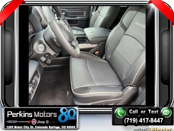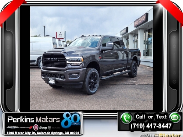 Factory MSRP: $94,820 $13,500 off MSRP! Granite Crystal Metallic Clearcoat 2024 Ram 3500 Laramie 4WD 6-Speed Automatic I6<br><br>Check us out at www.perkinsmotors.com to see our specials! Since opening our doors in 1944, we’ve been proud to serve Colorado Springs, CO, and the surrounding areas of Pueblo, Castle Rock and Denver, CO. Throughout this time of being family owned for 80 years, we’ve maintained a firm commitment to our customers: to offer a wide selection of New Chrysler, Dodge, Fiat, Jeep, and Ram vehicles and quality pre-owned vehicles, and provide a quick, no-hassle car-buying process that ensures everyone drives off the lot satisfied with their purchase.<br><br>Bed Utility Group (MOPAR Deployable Bed Step and MOPAR Spray In Bedliner), Laramie Level 1 Equipment Group (12 Touchscreen Display, 4G LTE Wi-Fi Hot Spot, Alexa Built-In, Apple CarPlay, Auto Adjust In Reverse Exterior Mirrors, Auto Dim Exterior Mirror, Auto High Beam Headlamp Control, Blind Spot & Cross Path Detection, Center Hub, Connected Travel & Traffic Services, Connectivity - US/Canada, Disassociated Touchscreen Display, Exterior Mirrors Courtesy Lamps, Exterior Mirrors w/Heating Element, Exterior Mirrors w/Supplemental Signals, For Details Visit DriveUconnect.com, For More Info, Call 800-643-2112, Global Telematics Box Module (TBM), Google Android Auto, GPS Antenna Input, GPS Navigation, HD Radio, Integrated Voice Command w/Bluetooth, LED Reflector Headlamps, LED Tail Lamps, Mirror Running Lights, Off-Road Information Pages, ParkSense Front/Rear Park Assist System, Power Adjust Mirrors, Power Adjustable Pedals w/Memory, Power Heated Folding Telescopic Mirrors w/Memory, Power-Adjustable Convex Aux Mirrors, Radio: Uconnect 5 Nav w/12.0 Display, Rain Sensitive Windshield Wipers, Selectable Tire Fill Alert, SiriusXM Radio Service, SiriusXM w/360L, and Trailer Tow Pages), Night Edition (Black Interior Accents and Body Color Grille Surround), Protection Group, Quick Order Package 21H Laramie, Safety Group (Adaptive Cruise Control w/Stop, Adaptive Steering System, and Full Speed Forward Collision Warning Plus), Snow Chief Group (Auxiliary Switches Prep, Clearance Lamps, and I/P Mounted Auxiliary Switches), Towing Technology Group (Center Stop Lamp w/Cargo View Camera and Surround View Camera System), 10 Speakers, 115V Auxiliary Rear Power Outlet, 2 Way Rear Headrest Seat, 220 Amp Alternator, 3.73 Axle Ratio, 4 Way Front Headrests, 4-Wheel Disc Brakes, 5th Wheel/Gooseneck Towing Prep Group, ABS brakes, Active Noise Control System, Air Conditioning, Alloy wheels, AM/FM radio: SiriusXM with 360L, Apple CarPlay/Android Auto, Auto Level Rear Air Suspension, Auto-dimming Rear-View mirror, Automatic temperature control, Black Exterior Mirrors, Brake assist, Bumpers: body-color, Compass, Cruise Control, Delay-off headlights, Driver door bin, Driver vanity mirror, Dual Alternators Rated At 440 Amps, Dual front impact airbags, Dual front side impact airbags, Electronic Stability Control, Electronically Controlled Throttle, Front anti-roll bar, Front Center Armrest w/Storage, Front dual zone A/C, Front License Plate Bracket, Front reading lights, Front Seat Back Map Pockets, Fully automatic headlights, Garage door transmitter, Heated door mirrors, Heated Front Seats, Heated front seats, Heated Steering Wheel, Heated steering wheel, High Back Seats, Illuminated entry, Leather steering wheel, Leather Trim 40/20/40 Bench Seat, Low tire pressure warning, Manufacturer's Statement of Origin, MOPAR Front & Rear Rubber Floor Mats, Occupant sensing airbag, Outside temperature display, Overhead airbag, Overhead console, Painted Flat Wheel-to-Wheel Side Steps, Panic alarm, ParkView Rear Back-Up Camera, Passenger door bin, Passenger vanity mirror, Power 2-Way Driver Lumbar Adjust, Power 2-Way Passenger Sale price includes all manufacture's incentives and dealer discounts. Sale price not available on lease or compatible with special APR. $1000 - 2024 Bonus Cash . Exp. 1