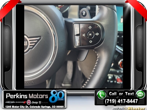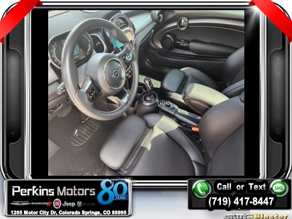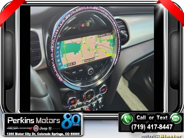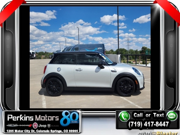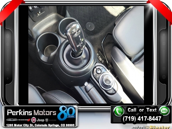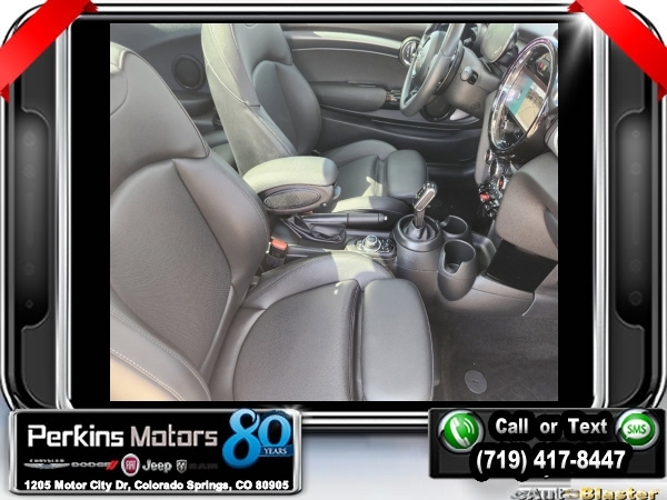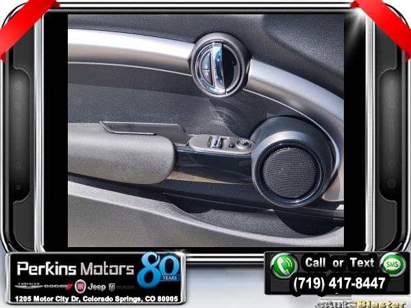 White Silver FWD 2.0L 16V TwinPower Turbo 7-Speed Automatic<br><br>Aluminum Interior Surface, Body Color Roof, Comfort Access Keyless Entry, Dual Zone Auto Climate Control, Heated Front Seats (DISC), Media Display, MINI Navigation, Nappa Leather Steering Wheel, Panoramic Moonroof, Signature Trim (DISC), Touchscreen Media Display (DISC), Touchscreen Navigation (DISC).<br><br><br>CARFAX One-Owner. Clean CARFAX.<br><br>Check us out at www.perkinsmotors.com to see our specials! Since opening our doors in 1944, we’ve been proud to serve Colorado Springs, CO, and the surrounding areas of Pueblo, Castle Rock and Denver, CO. Throughout this time of being family owned for 80 years, we’ve maintained a firm commitment to our customers: to offer a wide selection of New Chrysler, Dodge, Fiat, Jeep, and Ram vehicles and quality pre-owned vehicles, and provide a quick, no-hassle car-buying process that ensures everyone drives off the lot satisfied with their purchase.<br><br><br>Signature Trim (DISC) (Aluminum Interior Surface, Body Color Roof, Panoramic Moonroof, and Touchscreen Media Display (DISC)), Touchscreen Navigation (DISC) (Media Display, MINI Navigation, and Advanced Real-Time Traffic Information), Comfort Access Keyless Entry, Dual Zone Auto Climate Control, Heated Front Seats (DISC), Nappa Leather Steering Wheel, 4-Wheel Disc Brakes, 6 Speakers, ABS brakes, Active Driving Assistant, Air Conditioning, Alloy wheels, AM/FM radio: SiriusXM, AM/FM Stereo, Ambient Lighting, Apple CarPlay Compatibility, Auto High-beam Headlights, Black Roof & Mirror Caps, Brake assist, Bumpers: body-color, ConnectedDrive Services, Cruise Control, Delay-off headlights, Driver door bin, Driver vanity mirror, Dual front impact airbags, Dual front side impact airbags, Dynamic Digital Instrument Cluster, Electronic Stability Control, Emergency communication system, Enhanced USB & Bluetooth, Exterior Parking Camera Rear, Floor Mats, Four wheel independent suspension, Front anti-roll bar, Front Bucket Seats, Front Center Armrest, Front Center Armrest w/Storage, Front fog lights, Front reading lights, Fully automatic headlights, Heated door mirrors, Heated Front Seats, Illuminated entry, Knee airbag, Leather steering wheel, Low tire pressure warning, MINI Assist eCall, MINI Connected, MINI Driving Modes, MINI TeleServices, Occupant sensing airbag, Outside temperature display, Overhead airbag, Overhead console, Passenger door bin, Passenger Seat Height Adjustment, Passenger vanity mirror, Power door mirrors, Power steering, Power windows, Radio data system, Rain sensing wipers, Rear anti-roll bar, Rear fog lights, Rear Park Distance Control, Rear window defroster, Rear window wiper, Rear-View Camera, Remote keyless entry, Remote Services, SensaTec Leatherette Upholstery, SiriusXM Satellite Radio w/1 Year Subscription, Speed-sensing steering, Speed-Sensitive Wipers, Split folding rear seat, Spoiler, Sport Seats, Sport steering wheel, Standard Exterior Trim, Steering wheel mounted audio controls, Tachometer, Telescoping steering wheel, Tilt steering wheel, Traction control, Trip computer, Variably intermittent wipers, and Wheels: 17 x 7.0 Tentacle Spoke Black Alloy.