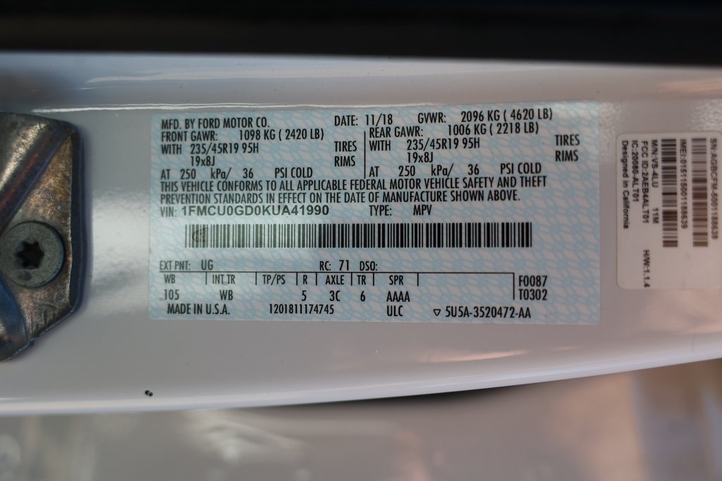 Air Conditioning, AppLink/Apple CarPlay and Android Auto, Black Beltline Molding, Black Roof-Rack Side Rails, Brake assist, Electronic Stability Control, Equipment Group 200A, Exterior Parking Camera Rear, FordPass Connect, Front & Rear Gloss Black-Painted Skid Plates, Front Bucket Seats, Front fog lights, Fully automatic headlights, Gloss Black-Painted Sideview Mirror Caps, Gloss Black-Painted Upper Grille Bars & Plinth, Halogen Projector Headlamps w/Black Bezels, Heated Partial Leather Front Sport Bucket Seats, Leather-Wrapped Steering Wheel & Shift Knob, Radio: AM/FM Stereo w/MP3 Capable, SE Sport Appearance Package, SYNC 3 Communications & Entertainment System, Taillamps w/Black Bezel, Wheels: 19" Premium Ebony Black-Painted Aluminum.23/30 City/Highway MPGClean CARFAX.To see more quality vehicles like this one right just click on AaronFordofPoway.com or dial (858) 748-1400.