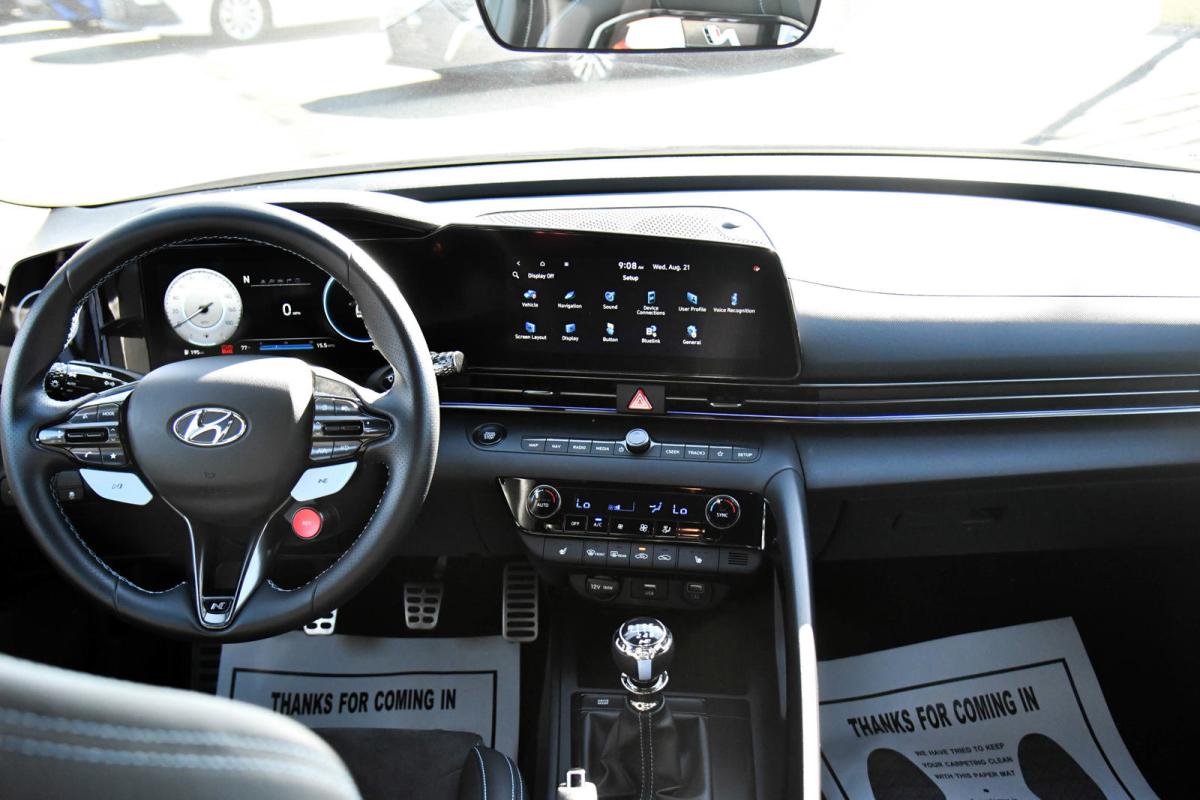 Only 4,994 Miles! Boasts 31 Highway MPG and 22 City MPG! This Hyundai Elantra N boasts a Intercooled Turbo Premium Unleaded I-4 2.0 L/122 engine powering this Manual transmission. OPTION GROUP 01 -inc: standard equipment, CYBER GRAY, BLACK W/BLUE STITCH, LEATHER W/ALCANTARA MICROSUEDE INSERTS SEAT TRIM.*This Hyundai Elantra N Features the Following Options *Wing Spoiler, Window Grid And Roof Mount Antenna, Wheels: 19 x 8.0 Alloy -inc: Machine finish black pearl, Variable Intermittent Wipers, Trunk Rear Cargo Access, Trip Computer, Transmission: 6-Speed Manual -inc: N Grin Control System, rev match and drive mode: (eco, normal, sport, N, custom), Tracker System, Tires: 245/35R19 Summer -inc: High-performance, Tire Specific Low Tire Pressure Warning.