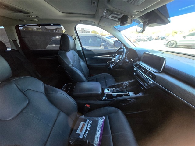 Priced below KBB Fair Purchase Price!Odometer is 18218 miles below market average!Black Copper 2022 Kia Telluride EX AWD 8-Speed Automatic 3.8L V6 DOHCIf you don't drive here, you can't save here!Price may not include recon fee. EX Premium Package (20" x 7.5" Machined Alloy Wheels, 2nd Row Captain Chairs, LED Headlamps, and Satin Chrome Roof Rails), 3.648 Axle Ratio, 3rd row seats: split-bench, 4-Wheel Disc Brakes, 6 Speakers, ABS brakes, Air Conditioning, Alloy wheels, AM/FM radio: SiriusXM, Apple CarPlay & Android Auto, Auto-dimming Rear-View mirror, Automatic temperature control, Brake assist, Bumpers: body-color, Carpeted Floor Mats, Compass, Delay-off headlights, Driver door bin, Driver vanity mirror, Dual front impact airbags, Dual front side impact airbags, Electronic Stability Control, Emergency communication system: 911 Connect, Four wheel independent suspension, Front anti-roll bar, Front Bucket Seats, Front Center Armrest, Front dual zone A/C, Front reading lights, Fully automatic headlights, Heated & Ventilated Front Bucket Seats, Heated door mirrors, Heated front seats, Heated steering wheel, Illuminated entry, Knee airbag, Leather Seat Trim, Leather Shift Knob, Leather steering wheel, Low tire pressure warning, Navigation System, Occupant sensing airbag, Outside temperature display, Overhead airbag, Overhead console, Panic alarm, Passenger door bin, Passenger vanity mirror, Power door mirrors, Power driver seat, Power Liftgate, Power moonroof, Power passenger seat, Power steering, Power windows, Radio data system, Radio: AM/FM Display Audio System, Rear air conditioning, Rear anti-roll bar, Rear audio controls, Rear reading lights, Rear seat center armrest, Rear window defroster, Rear window wiper, Reclining 3rd row seat, Remote keyless entry, Roof rack: rails only, Security system, Smart Key w/ Push Button and Remote Start, Speed control, Speed-sensing steering, Split folding rear seat, Spoiler, Steering wheel mounted audio controls, Tachometer, Telescoping steering wheel, Tilt steering wheel, Traction control, Trip computer, Turn signal indicator mirrors, Variably intermittent wipers, Ventilated front seats, and Wheels: 18" x 7.5" Machined Alloy.