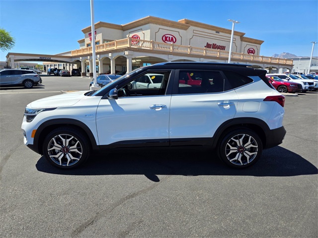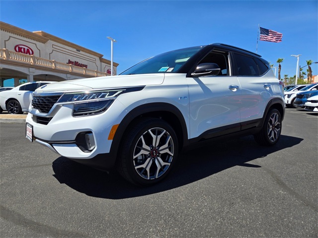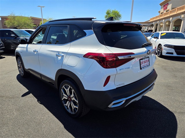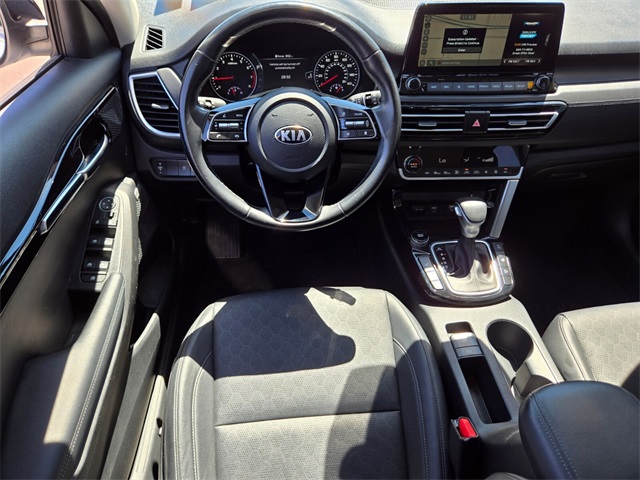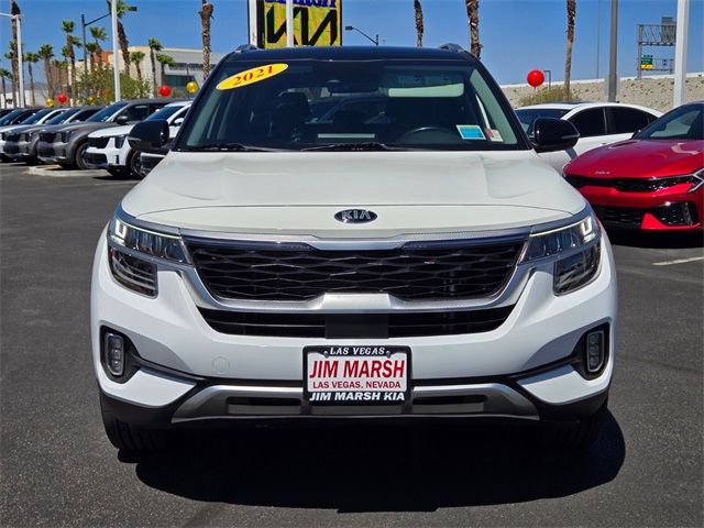 Recent Arrival!Odometer is 13635 miles below market average!25/30 City/Highway MPGClear White/Black Roof 2021 Kia Seltos SX AWD 7-Speed Automatic I4If you don't drive here, you can't save here!Price may not include recon fee. 18" Alloy Wheels, 4-Wheel Disc Brakes, 4.643 Axle Ratio, 8 Speakers, ABS brakes, Air Conditioning, Alloy wheels, AM/FM radio: SiriusXM, Apple CarPlay & Android Auto, Auto-dimming Rear-View mirror, Automatic temperature control, Brake assist, Bumpers: body-color, Carpeted Floor Mats, Delay-off headlights, Driver door bin, Driver vanity mirror, Dual front impact airbags, Dual front side impact airbags, Electronic Stability Control, Emergency communication system, Exterior Parking Camera Rear, Four wheel independent suspension, Front anti-roll bar, Front Bucket Seats, Front Center Armrest, Front fog lights, Front reading lights, Fully automatic headlights, Heated door mirrors, Heated Front Bucket Seats, Heated front seats, Illuminated entry, Leather Seat Trim, Leather Shift Knob, Low tire pressure warning, Navigation System, Occupant sensing airbag, Outside temperature display, Overhead airbag, Overhead console, Panic alarm, Passenger door bin, Passenger vanity mirror, Power door mirrors, Power driver seat, Power steering, Power windows, Radio: AM/FM/MP3 Display Audio, Rear seat center armrest, Rear window defroster, Rear window wiper, Remote keyless entry, Roof rack: rails only, Security system, Smart Key w/ Push Button and Remote Start, Speed control, Speed-sensing steering, Split folding rear seat, Spoiler, Steering wheel mounted audio controls, Tachometer, Telescoping steering wheel, Tilt steering wheel, Traction control, Trip computer, Turn signal indicator mirrors, and Variably intermittent wipers.