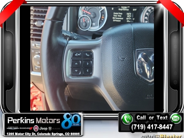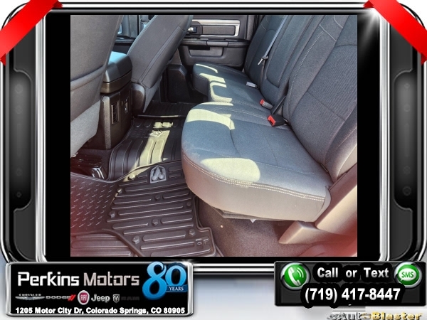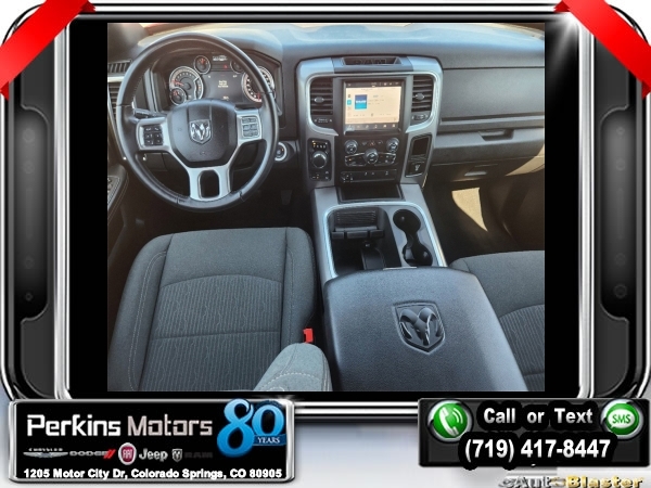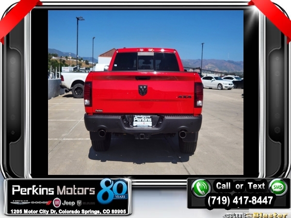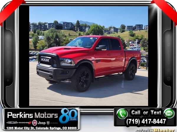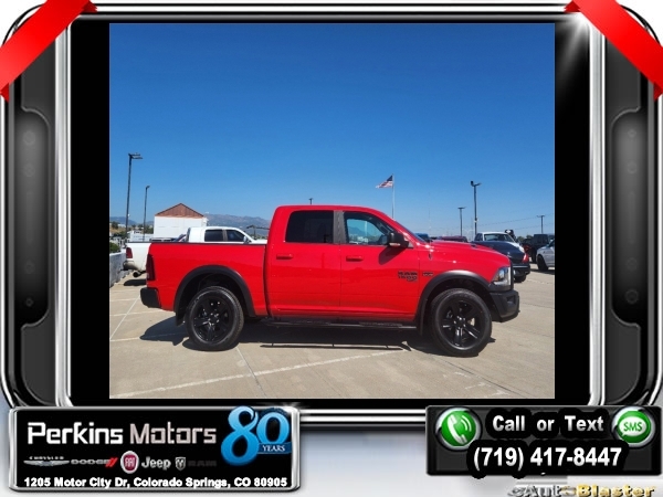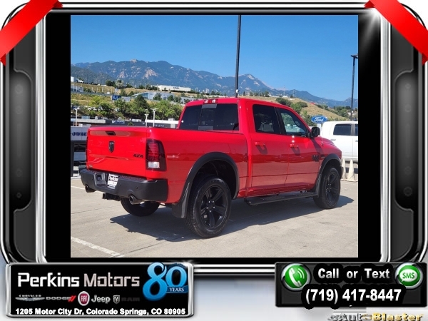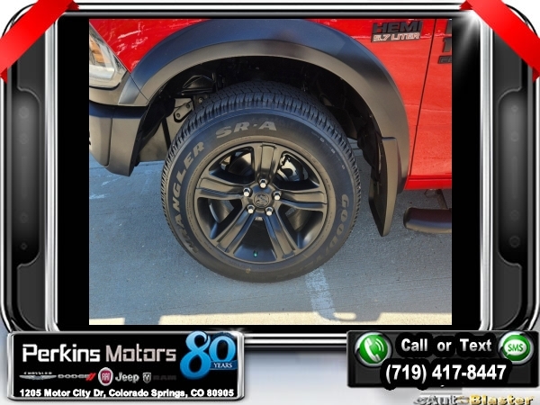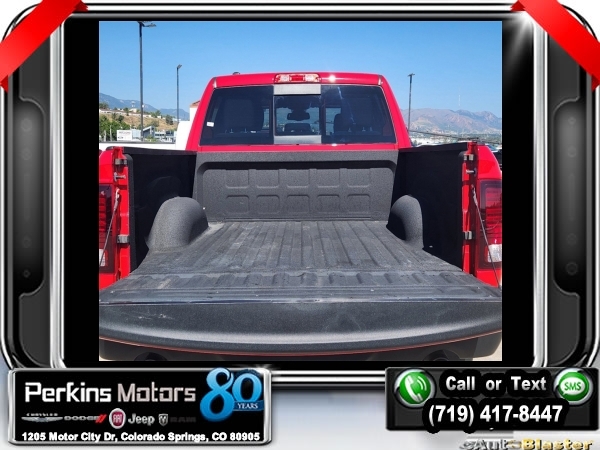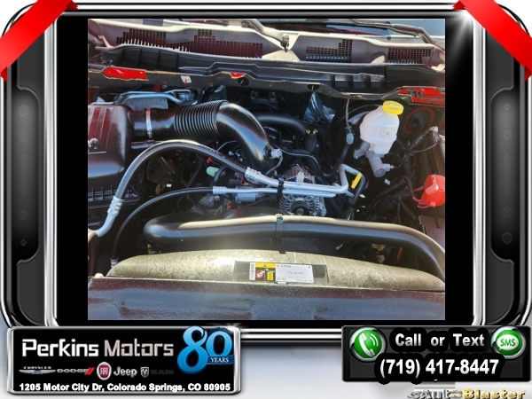 Flame Red Clearcoat 4WD HEMI 5.7L V8 Multi Displacement VVT 8-Speed Automatic<br><br><br>Clean CARFAX.<br><br>Check us out at www.perkinsmotors.com to see our specials! Since opening our doors in 1944, we’ve been proud to serve Colorado Springs, CO, and the surrounding areas of Pueblo, Castle Rock and Denver, CO. Throughout this time of being family owned for 80 years, we’ve maintained a firm commitment to our customers: to offer a wide selection of New Chrysler, Dodge, Fiat, Jeep, and Ram vehicles and quality pre-owned vehicles, and provide a quick, no-hassle car-buying process that ensures everyone drives off the lot satisfied with their purchase.<br><br><br>Electronics Group (8.4 Touchscreen Display, Air Conditioning ATC w/Dual Zone Control, Apple CarPlay, Audio Input Jack for Mobile Devices, Cluster 7.0 TFT Color Display, GPS Antenna Input, Integrated Voice Command w/Bluetooth, Media Hub (2 USB, AUX), Radio: Uconnect 5 W w/8.4 Display, and Remote USB Port), Luxury Group (Auto-Dimming Exterior Mirrors, Black Exterior Mirrors, Exterior Mirrors w/Heating Element, Glove Box Lamp, Overhead Console w/Garage Door Opener, Rear Dome w/On/Off Switch Lamp, and Sun Visors w/Illuminated Vanity Mirrors), Protection Group, Quick Order Package 27F Warlock (Black Headlamp Filler Panel, Black RAM Head Tailgate Badge, ParkSense Rear Park Assist System, Semi-Gloss Black Hub, Sport Tail Lamps, Warlock, and Warlock Interior Accents), Remote Start & Security Alarm Group, Technology Package I, Utility Group, 3.21 Rear Axle Ratio, 3.92 Rear Axle Ratio, 32 Gallon Fuel Tank, 4-Wheel Disc Brakes, 40/20/40 Split Bench Seat, 6 Speakers, ABS brakes, Active Grille Shutters, Air Conditioning, Alloy wheels, AM/FM radio: SiriusXM, Anti-Spin Differential Rear Axle, Brake assist, Bumpers: chrome, Center Hub, Class IV Receiver Hitch, Cloth 40/20/40 Bench Seat, Compass, Cruise Control, Delay-off headlights, Driver door bin, Dual front impact airbags, Dual front side impact airbags, Electronic Shift, Electronic Stability Control, Engine Calibration Flash, V2, Front anti-roll bar, Front Armrest w/3 Cupholders, Front Center Armrest w/Storage, Front reading lights, Front wheel independent suspension, Fully automatic headlights, Heated door mirrors, Illuminated entry, Low tire pressure warning, MOPAR Front & Rear Rubber Floor Mats, MOPAR Sport Performance Hood, Occupant sensing airbag, Outside temperature display, Overhead airbag, Overhead console, Panic alarm, ParkView Rear Back-Up Camera, Passenger door bin, Passenger vanity mirror, Power door mirrors, Power steering, Power windows, Radio data system, Radio: Uconnect 3 w/5 Display, Rear anti-roll bar, Rear Power Sliding Window, Rear seat center armrest, Rear step bumper, Rear Window Defroster, Remote keyless entry, Remote USB Port - Charge Only, Rotary Shifter-Black, Storage Tray, Tachometer, Tilt steering wheel, Tip Start, Traction control, Trailer Brake Control, Trip computer, Variably intermittent wipers, and Voltmeter.