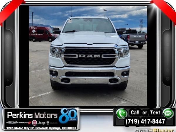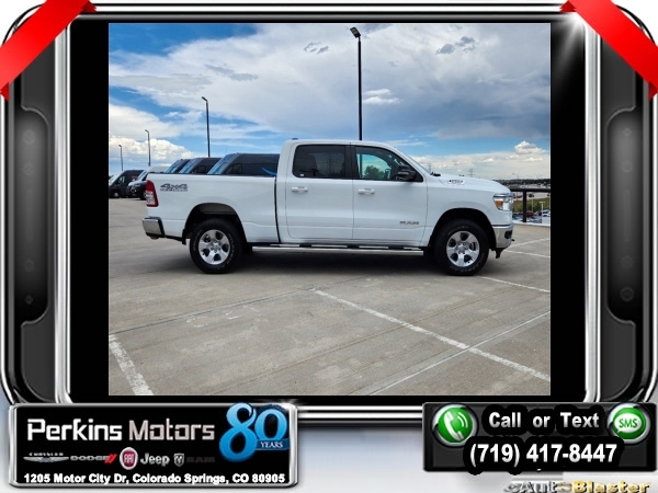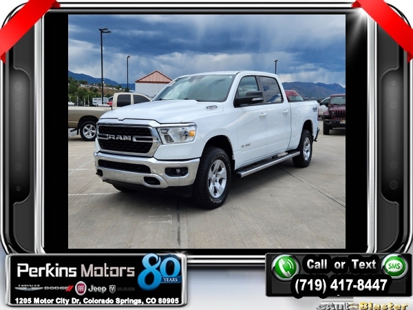 Bright White Clearcoat 4WD V8 8-Speed Automatic<br><br>2nd Row In Floor Storage Bins, 4G LTE Wi-Fi Hot Spot, 8.4 Touchscreen Display, Advanced Brake Assist, All Plant-Installed Decals, Apple CarPlay, Auto-Dimming Exterior Driver Mirror, Auto-Dimming Rear-View Mirror, Bed Utility Group, Big Horn Badge, Big Horn Level 1 Equipment Group, Black Exterior Mirrors, Black Premium Power Mirrors, Bluetooth Handsfree Phone & Audio, Class IV Receiver Hitch, Cluster 3.5 TFT Color Display, Connectivity - US/Canada, Convex Wide-Angle Mirror Insert, E-Locker Rear Axle, Exterior Mirrors Courtesy Lamps, Exterior Mirrors w/Heating Element, Exterior Mirrors w/Supplemental Signals, For Details, Visit DriveUconnect.com, Front Extra HD Shock Absorbers, Full Speed Forward Collision Warning Plus, Global Telematics Box Module (TBM), Glove Box Lamp, Google Android Auto, GPS Antenna Input, Hill Descent Control, Integrated Center Stack Radio, Lane Keep Assist, Level 1 Safety Group, MOPAR 4 Adjustable Cargo Tie-Down Hooks, MOPAR Deployable Bed Step, MOPAR Spray In Bedliner, Off Road Decals, Off Road Group, Pedestrian Emergency Braking, Pick-Up Box Lighting, Power 2-Way Driver Lumbar Adjust, Power 8-Way Driver Seat, Power Adjustable Pedals, Power-Folding Mirrors, Quick Order Package 25Z Big Horn, Radio: Uconnect 5 W w/8.4 Display, Raised Ride Height, Rear Dome w/On/Off Switch Lamp, Rear Extra HD Shock Absorbers, Rear Power Sliding Window, Rear Window Defroster, SiriusXM Radio Service, SiriusXM Satellite Radio, Sun Visors w/Illuminated Vanity Mirrors, Tow Hooks, Universal Garage Door Opener, USB Host Flip.<br><br>Certified. FCA US LLC Certified Pre-Owned Details:<br><br> * Warranty Deductible: $100<br> * Roadside Assistance<br> * 125 Point Inspection<br> * Limited Warranty: 3 Month/3,000 Mile (whichever comes first) after new car warranty expires or from certified purchase date<br> * Includes First Day Rental, Car Rental Allowance, and Trip Interruption Benefits. SiriusXM 3 month trial subscription.<br> * Transferable Warranty<br> * Powertrain Limited Warranty: 84 Month/100,000 Mile (whichever comes first) from original in-service date<br> * Vehicle History<br><br><br>CARFAX One-Owner.<br><br>Check us out at www.perkinsmotors.com to see our specials! Since opening our doors in 1944, we’ve been proud to serve Colorado Springs, CO, and the surrounding areas of Pueblo, Castle Rock and Denver, CO. Throughout this time of being family owned for 80 years, we’ve maintained a firm commitment to our customers: to offer a wide selection of New Chrysler, Dodge, Fiat, Jeep, and Ram vehicles and quality pre-owned vehicles, and provide a quick, no-hassle car-buying process that ensures everyone drives off the lot satisfied with their purchase.<br><br><br>Bed Utility Group (MOPAR 4 Adjustable Cargo Tie-Down Hooks, MOPAR Deployable Bed Step, MOPAR Spray In Bedliner, and Pick-Up Box Lighting), Big Horn Level 1 Equipment Group (2nd Row In Floor Storage Bins, 4G LTE Wi-Fi Hot Spot, 8.4 Touchscreen Display, Apple CarPlay, Auto-Dimming Exterior Driver Mirror, Auto-Dimming Rear-View Mirror, Black Exterior Mirrors, Black Premium Power Mirrors, Bluetooth Handsfree Phone & Audio, Class IV Receiver Hitch, Cluster 3.5 TFT Color Display, Connectivity - US/Canada, Convex Wide-Angle Mirror Insert, Exterior Mirrors Courtesy Lamps, Exterior Mirrors w/Heating Element, Exterior Mirrors w/Supplemental Signals, For Details, Visit DriveUconnect.com, Global Telematics Box Module (TBM), Glove Box Lamp, Google Android Auto, GPS Antenna Input, Integrated Center Stack Radio, Power 2-Way Driver Lumbar Adjust, Power 8-Way Driver Seat, Power Adjustable Pedals, Power-Folding Mirrors, Radio: Uconnect 5 W w/8.4 Display, Rear Dome w/On/Off Switch Lamp, Rear Power Sliding Window, Rear Window Defroster, SiriusXM Radio Service, SiriusXM Satellite Radio, Sun Visors w/Illuminated Vanity Mirrors, Universal Garage Door Opener, and USB Host Flip), Level 1 Safety Group (Advanced Brake Assist, Full