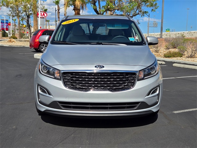 Recent Arrival!Priced below KBB Fair Purchase Price!Odometer is 33901 miles below market average!Silky Silver 2021 Kia Sedona LX FWD 8-Speed Automatic 3.3L V6 DGIIf you don't drive here, you can't save here!Price may not include recon fee. 2-Way Power Driver's Lumbar Support, 3.51 Axle Ratio, 3rd row seats: split-bench, 4-Wheel Disc Brakes, 6 Speakers, 8-Way Power Driver's Seat, ABS brakes, Air Conditioning, Alloy wheels, Apple CarPlay & Android Auto, Brake assist, Bumpers: body-color, Cargo Net, Carpeted Floor Mats, Delay-off headlights, Driver door bin, Driver vanity mirror, Dual front impact airbags, Dual front side impact airbags, Electronic Stability Control, Exterior Parking Camera Rear, Four wheel independent suspension, Front anti-roll bar, Front Bucket Seats, Front Center Armrest, Front reading lights, Fully automatic headlights, Illuminated entry, Low tire pressure warning, Mud Guards, Occupant sensing airbag, Outside temperature display, Overhead airbag, Overhead console, Panic alarm, Passenger door bin, Passenger vanity mirror, Power door mirrors, Power driver seat, Power steering, Power windows, Radio: AM/FM Audio System, Rear air conditioning, Rear anti-roll bar, Rear reading lights, Rear window defroster, Rear window wiper, Reclining 3rd row seat, Remote keyless entry, Security system, Speed control, Speed-sensing steering, Split folding rear seat, Spoiler, Steering wheel mounted audio controls, Tachometer, Telescoping steering wheel, Tilt steering wheel, Traction control, Trip computer, Turn signal indicator mirrors, Variably intermittent wipers, and Wheel Locks.