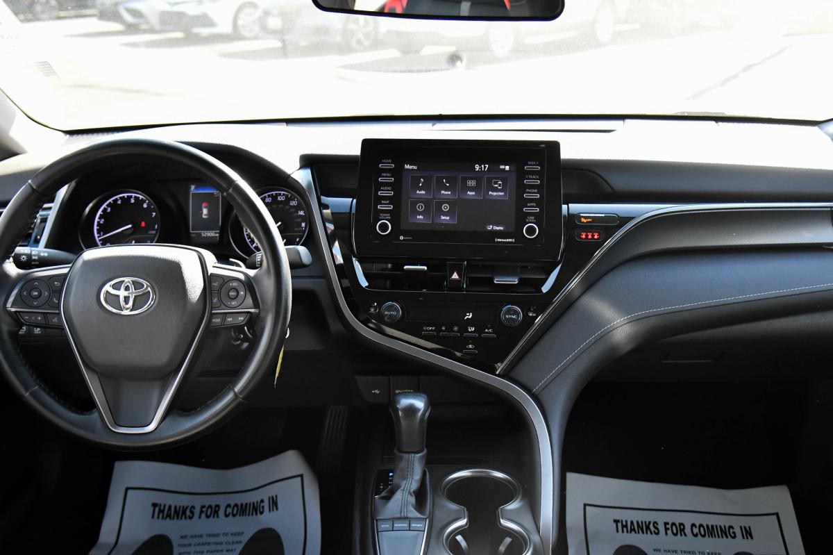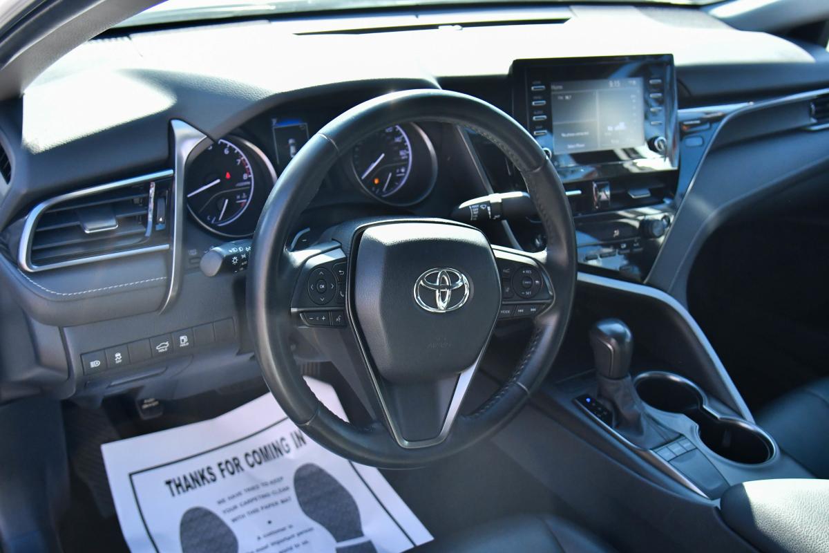 Delivers 39 Highway MPG and 28 City MPG! This Toyota Camry delivers a Regular Unleaded I-4 2.5 L/152 engine powering this Automatic transmission. Variable Intermittent Wipers, Urethane Gear Shifter Material, Trunk Rear Cargo Access.*This Toyota Camry Features the Following Options *Trip Computer, Transmission: 8-Speed Direct Shift ECT-i Automatic -inc: sequential shift mode and paddle shifters, Toyota Safety Sense (TSS) 2.5+, Tires: 235/45R18 AS, Tire Pressure Monitor System (TPMS) Tire Specific Low Tire Pressure Warning, Strut Front Suspension w/Coil Springs, Steel Spare Wheel, Single Stainless Steel Exhaust w/Polished Tailpipe Finisher, Side Impact Beams, Seats w/Leatherette Back Material.