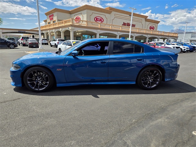 Frostbite 2020 Dodge Charger R/T Scat Pack RWD 8-Speed Automatic SRT HEMI 6.4L V8 MDS Black Cloth.If you don't drive here, you can't save here!Price may not include recon fee. Quick Order Package 21W, Black Cloth, 4-Wheel Disc Brakes, 6 Speakers, ABS brakes, Air Conditioning, Alloy wheels, AM/FM radio: SiriusXM, Anti-whiplash front head restraints, Apple CarPlay/Android Auto, Auto-dimming Rear-View mirror, Automatic temperature control, Brake assist, Bumpers: body-color, Cloth Performance Seats w/Bee Logo, Compass, Delay-off headlights, Driver door bin, Driver vanity mirror, Dual front impact airbags, Dual front side impact airbags, Electronic Stability Control, Emergency communication system: SiriusXM Guardian, Four wheel independent suspension, Front anti-roll bar, Front Bucket Seats, Front Center Armrest, Front dual zone A/C, Front fog lights, Front License Plate Bracket, Front reading lights, Fully automatic headlights, Garage door transmitter: HomeLink, Heated front seats, Illuminated entry, Knee airbag, Leather Shift Knob, Low tire pressure warning, Manufacturer's Statement of Origin, Occupant sensing airbag, Outside temperature display, Overhead airbag, Overhead console, Panic alarm, ParkView Rear Back-Up Camera, Passenger door bin, Passenger vanity mirror, Power door mirrors, Power driver seat, Power Driver/Passenger 4-Way Lumbar Adjust, Power Front Driver/Passenger Seats, Power passenger seat, Power steering, Power windows, Radio data system, Radio: Uconnect 4C w/8.4" Display, Rear anti-roll bar, Rear reading lights, Rear seat center armrest, Rear window defroster, Remote keyless entry, Security system, Speed control, Speed-Sensitive Wipers, Split folding rear seat, Spoiler, Sport steering wheel, Steering wheel mounted audio controls, Tachometer, Telescoping steering wheel, Tilt steering wheel, Traction control, Trip computer, Variably intermittent wipers, and Wheels: 20" x 9" Lo Gloss Granite Crystal.