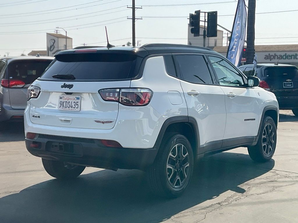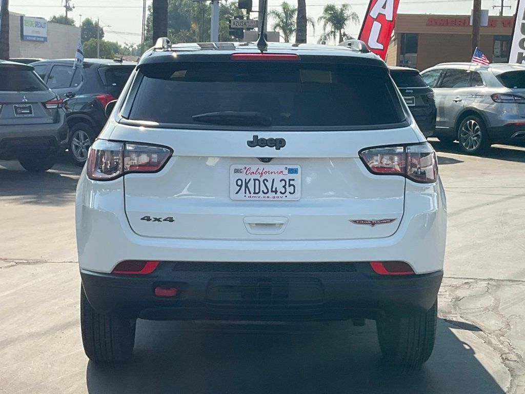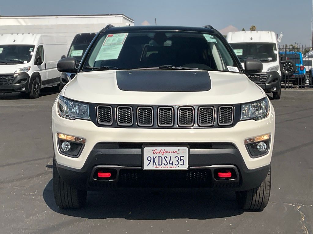 SUMMER SALES EVENT IS EXTENDED FOR THE MONTH OF SEPTEMBER. OUR INVENTORY IS PRICED BELOW MARKET VALUE.COME IN FOR A TEST DRIVE OR CALL (626) 899-9302 TO GET MORE INFORMATIONWE SPECIALIZE IN ALL CREDIT PROFILES! See what we can do for you! Call to find out (626) 899-9302.Recent Arrival! Clean CARFAX.Odometer is 21293 miles below market average! 22/30 City/Highway MPG ** CARFAX BUYBACK GUARANTEE **, ** PASSED FULL MULTI POINT INSPECTION, ** SERVICE COMPLETED: OIL CHANGE, NEW OIL FILTER, NEW CABIN FILTER & NEW ENGINE AIR FILTER, ** FULL DETAIL INCLUDED: EXTERIOR PAINT PROTECTION, INTERIOR PROTECTION, AND WHEEL + TIRE SHINE, ** SMOG CERTIFICATION PASSED, ** BACKUP CAMERA, ** BLUETOOTH, ** NAVIGATION INCLUDED, ** APPLE CAR PLAY/ ANDROID AUTO, 4WD, 4-Way Power Lumbar Adjust, Auto-Dimming Rear-View Mirror, GPS Navigation, Heated Front Seats, Heated Steering Wheel, Leather Interior Group, Leather w/Perforated Insert Bucket Seats, Power 8-Way Driver/Manual 6-Way Passenger Seats, Power Front/Fixed Rear Full Sunroof, Quick Order Package 27E (DISC), Remote Start System, Windshield Wiper De-Icer.White Clearcoat2019 Jeep Compass Trailhawk 4WD 9-Speed Automatic 2.4L I4**********All Pricing and Advertised Prices for any/all vehicles offered for sale does not include dealer installed accessories which can be purchased for an additional cost.********** The Factory Rebates may not be available on this vehicle if you elect to take advantage of a Special Alternative APR or Special Lease program. Some Factory Rebates are California Resident specific and may vary for residents of other states. NO sales to Dealers, Brokers or Exporters. For out of state purchase, customers must be present to purchase. If shipping is required, dealership must facilitate; no exceptions. Please contact us for special Multi-Vehicle or Fleet pricing. Prices are plus government fees and taxes, any finance charges, $85 documentary fee, $29 electronic registration fee, any emission testing charge and $1.75 per new tire state tire fee. *** We make every effort to provide accurate information, but please verify before purchasing. Leasing & financing available on approved credit. Trade-ins accepted. Subject to prior sale.