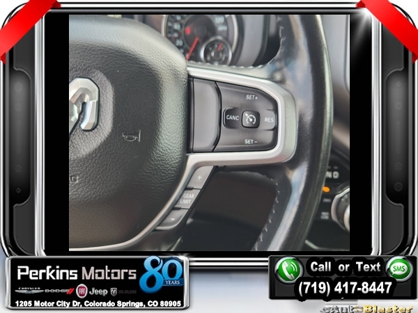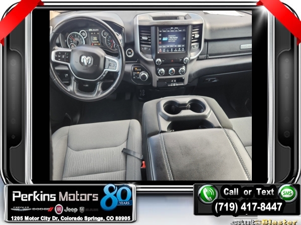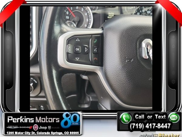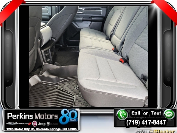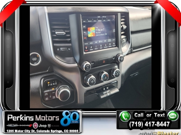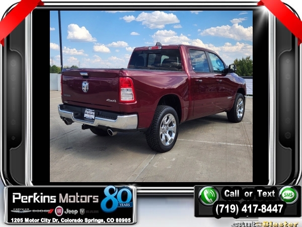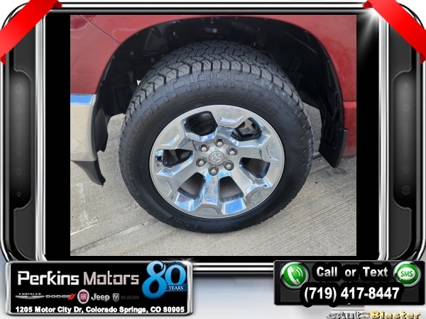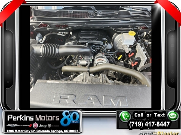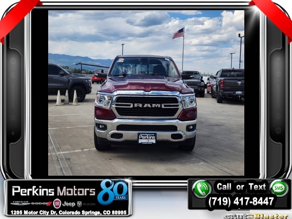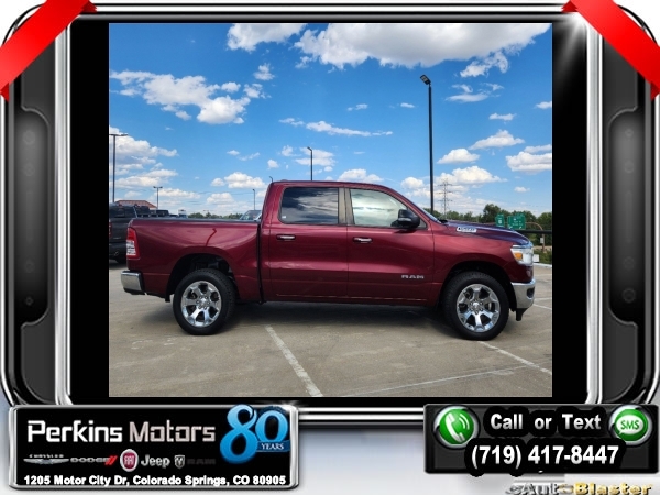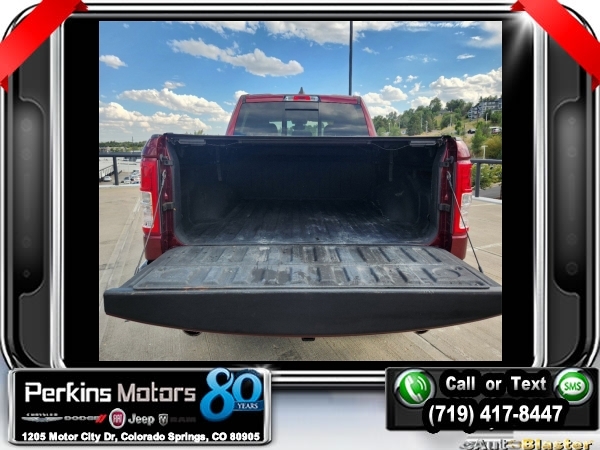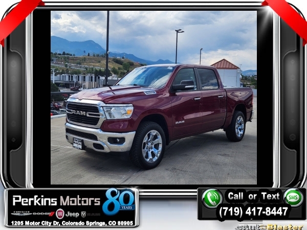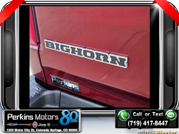 Delmonico Red Pearlcoat 4WD HEMI 5.7L V8 Multi Displacement VVT 8-Speed Automatic<br><br>2nd Row In Floor Storage Bins, 3.92 Rear Axle Ratio, 4 Adjustable Cargo Tie-Down Hooks, 6 Speakers, Auto-Dimming Rear-View Mirror, Bed Utility Group, Big Horn Badge, Big Horn IP Badge, Big Horn Level 1 Equipment Group, Black Premium Power Mirrors, Class IV Receiver Hitch, Cluster 3.5 TFT Color Display, Deployable Bed Step, Foam Bottle Insert (Door Trim Panel), Glove Box Lamp, ParkView Rear Back-Up Camera, Pick-Up Box Lighting, Power 4-Way Driver Lumbar Adjust, Power 8-Way Driver Seat, Power Adjustable Pedals, Quick Order Package 25Z Big Horn, Radio: Uconnect 4 w/8.4 Display, Rear Dome w/On/Off Switch Lamp, Rear Power Sliding Window, Rear Window Defroster, SiriusXM Satellite Radio, Spray In Bedliner, Sun Visors w/Illuminated Vanity Mirrors, Universal Garage Door Opener, Wheels: 20 x 9 Aluminum Chrome Clad (WRK).<br><br><br>Clean CARFAX.<br><br>Check us out at www.perkinsmotors.com to see our specials! Since opening our doors in 1944, we’ve been proud to serve Colorado Springs, CO, and the surrounding areas of Pueblo, Castle Rock and Denver, CO. Throughout this time of being family owned for 80 years, we’ve maintained a firm commitment to our customers: to offer a wide selection of New Chrysler, Dodge, Fiat, Jeep, and Ram vehicles and quality pre-owned vehicles, and provide a quick, no-hassle car-buying process that ensures everyone drives off the lot satisfied with their purchase.<br><br><br>Bed Utility Group (4 Adjustable Cargo Tie-Down Hooks, Deployable Bed Step, Pick-Up Box Lighting, and Spray In Bedliner), Big Horn Level 1 Equipment Group (2nd Row In Floor Storage Bins, Auto-Dimming Rear-View Mirror, Big Horn IP Badge, Black Premium Power Mirrors, Class IV Receiver Hitch, Cluster 3.5 TFT Color Display, Foam Bottle Insert (Door Trim Panel), Glove Box Lamp, Power 4-Way Driver Lumbar Adjust, Power 8-Way Driver Seat, Power Adjustable Pedals, Radio: Uconnect 4 w/8.4 Display, Rear Dome w/On/Off Switch Lamp, Rear Power Sliding Window, Rear Window Defroster, SiriusXM Satellite Radio, Sun Visors w/Illuminated Vanity Mirrors, and Universal Garage Door Opener), Quick Order Package 25Z Big Horn (Big Horn Badge), 3.92 Rear Axle Ratio, 6 Speakers, ParkView Rear Back-Up Camera, Wheels: 20 x 9 Aluminum Chrome Clad (WRK), 3 Rear Seat Head Restraints, 4 Way Front Headrests, 4-Wheel Disc Brakes, 48V Belt Starter Generator, ABS brakes, Air Conditioning, Alloy wheels, AM/FM radio, Anti-Spin Differential Rear Axle, Brake assist, Bumpers: chrome, Cloth Bench Seat, Compass, Cruise Control, Delay-off headlights, Driver door bin, Dual front impact airbags, Dual front side impact airbags, Electronic Stability Control, Front & Rear Rubber Floor Mats, Front anti-roll bar, Front Center Armrest w/Storage, Front fog lights, Front reading lights, Front Seat Back Map Pockets, Front wheel independent suspension, Fully automatic headlights, GPS Antenna Input, Heated door mirrors, Illuminated entry, Leather steering wheel, Low tire pressure warning, Manufacturer's Statement of Origin, Occupant sensing airbag, Outside temperature display, Overhead airbag, Overhead console, Panic alarm, Passenger door bin, Passenger vanity mirror, Power door mirrors, Power steering, Power windows, Radio data system, Radio: Uconnect 3 w/5 Display, Rear 60/40 Folding Seat, Rear anti-roll bar, Rear seat center armrest, Rear step bumper, Rear Underseat Compartment Storage, Rear Wheelhouse Liners, Remote keyless entry, Split folding rear seat, Steering wheel mounted audio controls, Tachometer, Telescoping steering wheel, Tilt steering wheel, Traction control, Trip computer, Variably intermittent wipers, Voltmeter, and Wheels: 18 x 8 Cast-Aluminum Painted.
