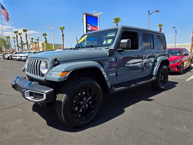 Priced below KBB Fair Purchase Price!Anvil Clear Coat 2024 Jeep Wrangler Sahara 4xe 4WD 8-Speed Automatic 2.0L I4 DOHC 2.0L I4 DOHC.If you don't drive here, you can't save here!Price may not include recon fee. Quick Order Package 29P Sahara, 2.0L I4 DOHC, 12.3" Touchscreen Display, 3.73 Rear Axle Ratio, 4-Wheel Disc Brakes, 4G LTE Wi-Fi Hot Spot, 8 Speakers, ABS brakes, Air Conditioning, Alloy wheels, AM/FM radio: SiriusXM, Apple CarPlay, Apple CarPlay/Android Auto, Automatic temperature control, Body Color 3-Piece Hard Top, Brake assist, Cloth Low-Back Bucket Seats, Compass, Connectivity - US/Canada, Delay-off headlights, Disassociated Touchscreen Display, Driver door bin, Driver vanity mirror, Dual front impact airbags, Dual front side impact airbags, Electronic Stability Control, Emergency communication system: Jeep Connect, Freedom Panel Storage Bag, Front anti-roll bar, Front Bucket Seats, Front Center Armrest w/Storage, Front dual zone A/C, Front fog lights, Front License Plate Bracket, Front reading lights, Fully automatic headlights, Google Android Auto, Heated door mirrors, Heated front seats, Heated steering wheel, Illuminated entry, Integrated Center Stack Radio, Integrated roll-over protection, Integrated Voice Command w/Bluetooth, Low tire pressure warning, MOPAR All-Weather Floor Mats, No Soft Top, Occupant sensing airbag, Outside temperature display, Overhead airbag, Panic alarm, ParkView Rear Back-Up Camera, Passenger door bin, Passenger vanity mirror, Power door mirrors, Power steering, Power windows, Radio data system, Radio: Uconnect 5 w/12.3" Display, Rear anti-roll bar, Rear reading lights, Rear seat center armrest, Rear Window Defroster, Rear Window Wiper/Washer, Remote keyless entry, Security system, Speed control, Split folding rear seat, Sport Suspension, Steering wheel mounted audio controls, Tachometer, Telescoping steering wheel, Tilt steering wheel, Traction control, Trip computer, Variably intermittent wipers, Voltmeter, and Wheels: 20" x 8" Painted Black Aluminum.