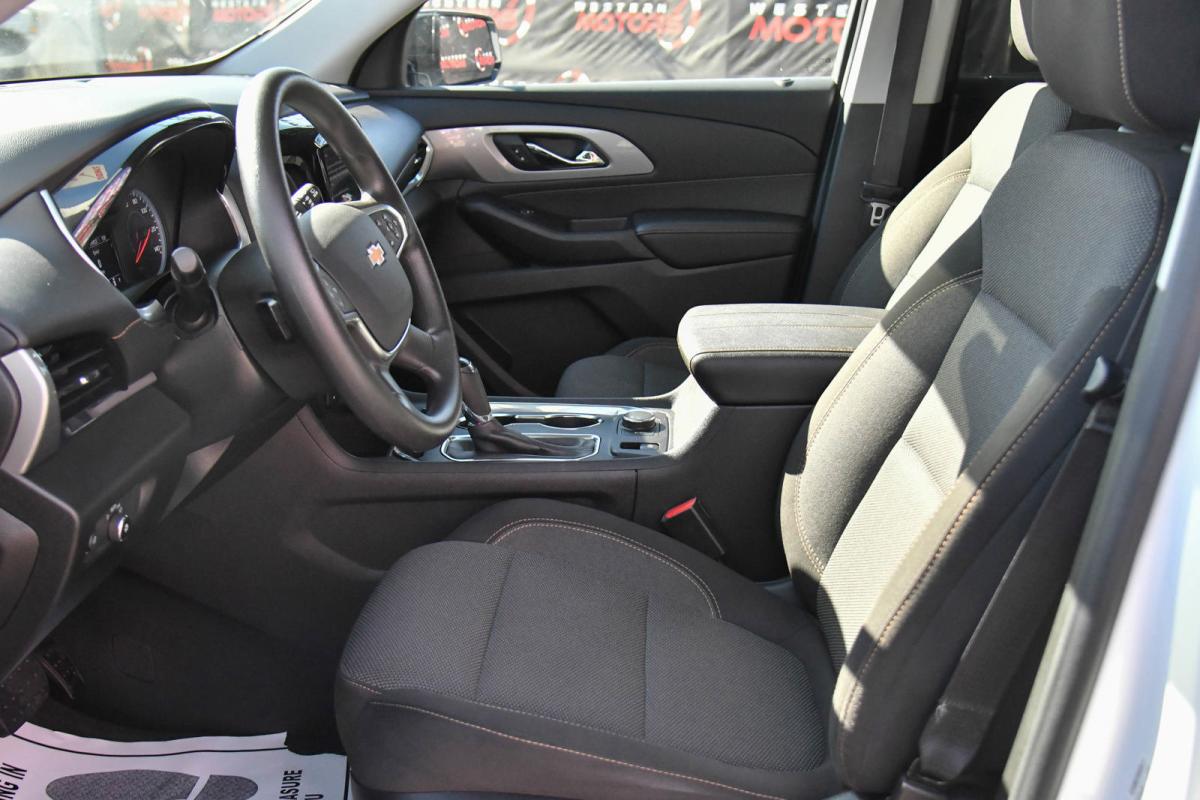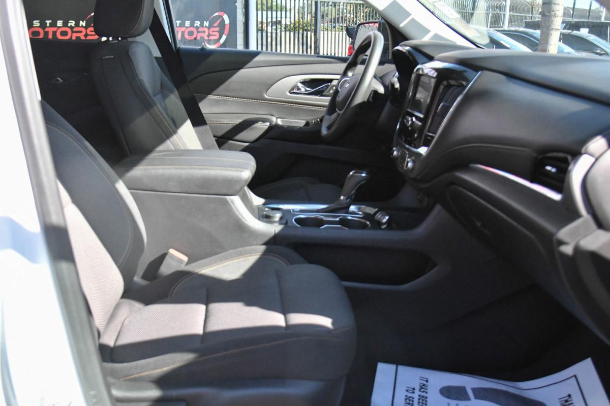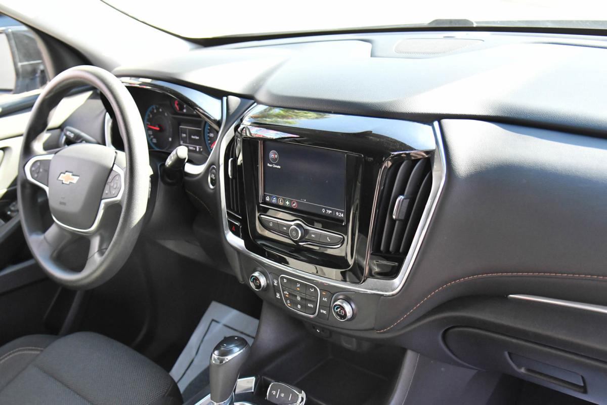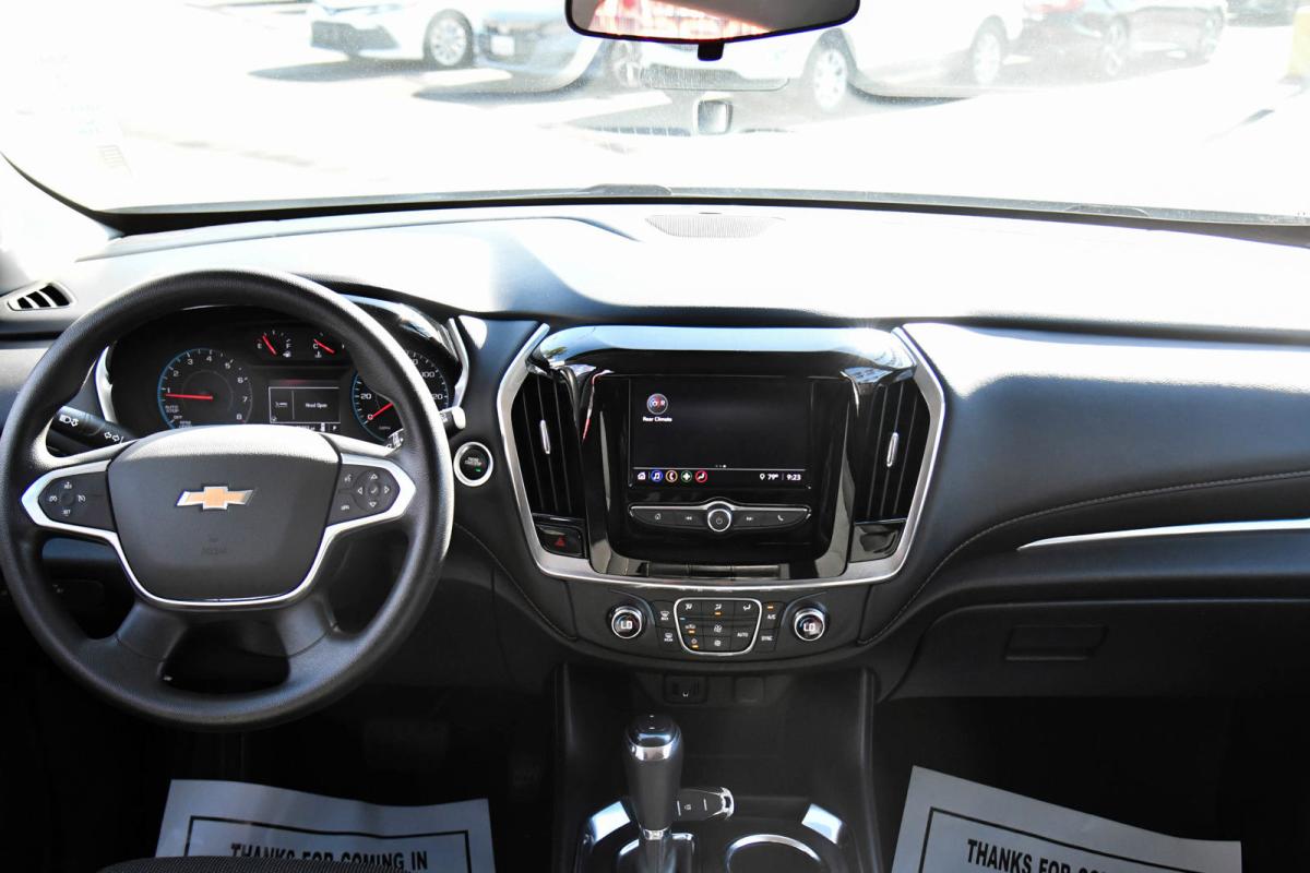 Delivers 27 Highway MPG and 18 City MPG! This Chevrolet Traverse delivers a Gas V6 3.6L/217 engine powering this Automatic transmission. WHEELS, 20 X 8 ALUMINUM TRANSIT, TRANSMISSION, 9-SPEED AUTOMATIC (STD), TIRES, P255/55R20 ALL-SEASON BLACKWALL.*This Chevrolet Traverse Comes Equipped with These Options *LPO, BLACKOUT PACKAGE includes (SJ9) Black finish grille, LPO, (SFZ) front and rear Black bowtie emblems, LPO, (RXX) Black rear license plate applique, LPO and (RIK) Gloss Black emblem kit, LICENSE PLATE FRONT MOUNTING PACKAGE (will be forced on orders with ship-to states that require a front license plate) , SUMMIT WHITE, SEATS, FRONT BUCKET (STD), LS PREFERRED EQUIPMENT GROUP Includes Standard Equipment, LPO, GRILLE, BLACK FINISH, LPO, GLOSS BLACK EMBLEM KIT, LPO, BLACK REAR LICENSE PLATE APPLIQUE, LPO, BLACK LUG NUT AND WHEEL LOCK KIT includes 20 lug nuts, 4 locks and 1 key, LPO, BLACK BOWTIE EMBLEMS, FRONT AND REAR.