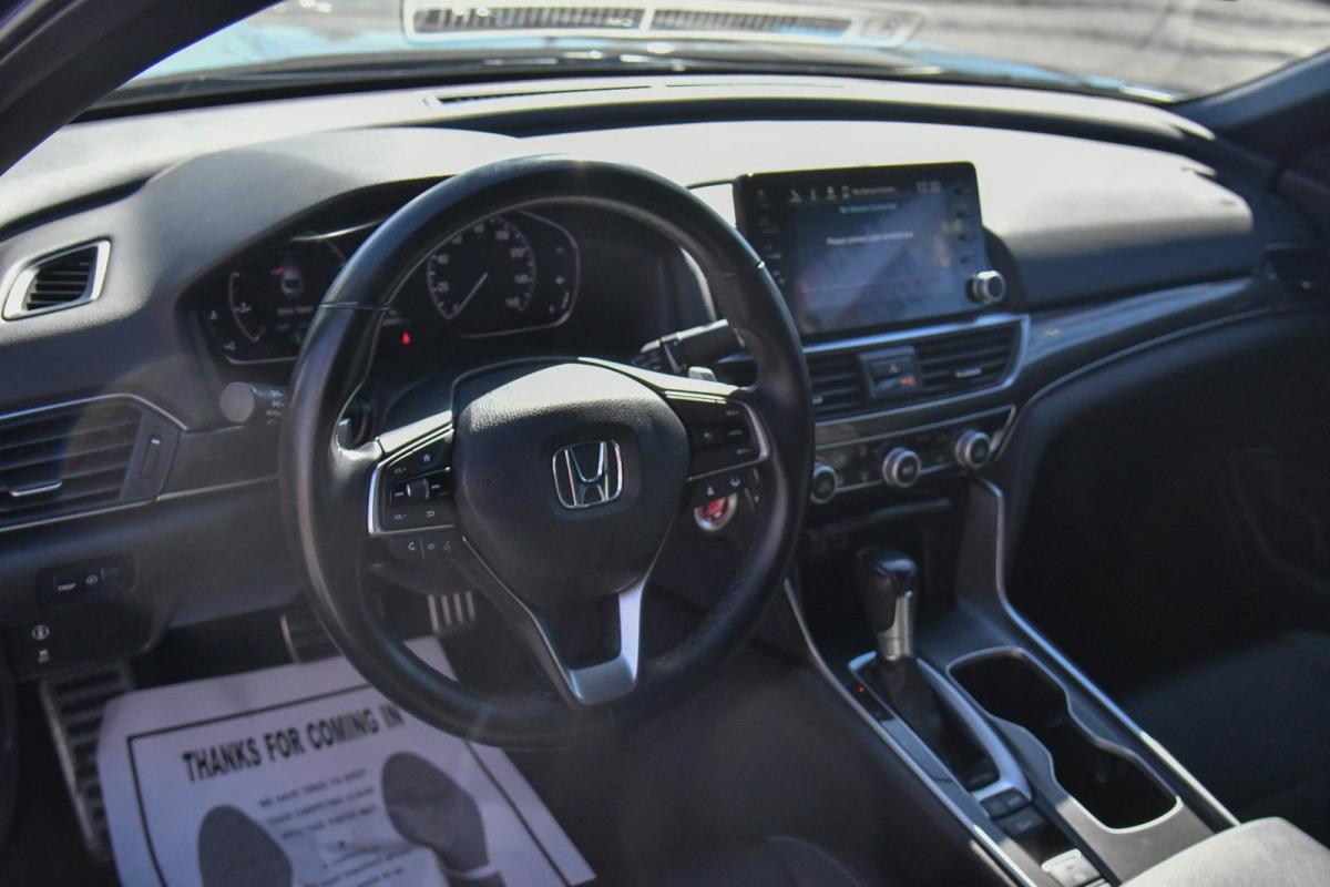 Boasts 35 Highway MPG and 29 City MPG! This Honda Accord Sedan boasts a Intercooled Turbo Regular Unleaded I-4 1.5 L/91 engine powering this Variable transmission. Wheels: 19 Machine-Finished Alloy w/Black Inserts, Vehicle Stability Assist (VSA) Electronic Stability Control (ESC), Valet Function.*This Honda Accord Sedan Comes Equipped with These Options *Trunk Rear Cargo Access, Trip Computer, Transmission: Continuously Variable -inc: sport mode and paddle shifters, Tires: 235/40R19 96V AS, Strut Front Suspension w/Coil Springs, Steel Spare Wheel, Speed Sensitive Variable Intermittent Wipers, Side Impact Beams, Seats w/Leatherette Back Material, Remote Releases -Inc: Power Cargo Access.