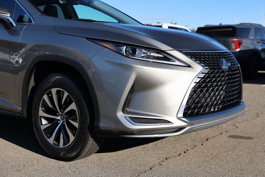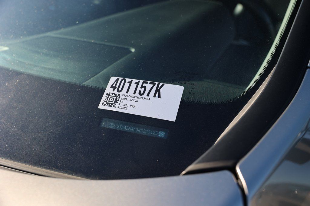 Atomic Silver 2022 Lexus RX 350 FWD 8-Speed Automatic 3.5L V6 DOHC 24V Black w/Blue w/NuLuxe Seat Trim, 18" x 8" Aluminum Wheels, 9 Speakers, Air Conditioning, AM/FM/CD Radio, Apple CarPlay/Android Auto, Brake assist, Electronic Stability Control, Exterior Parking Camera Rear, Front Bucket Seats, Fully automatic headlights, NuLuxe Seat Trim, Power driver seat, Power Liftgate, Spoiler.Odometer is 4913 miles below market average! 20/27 City/Highway MPG