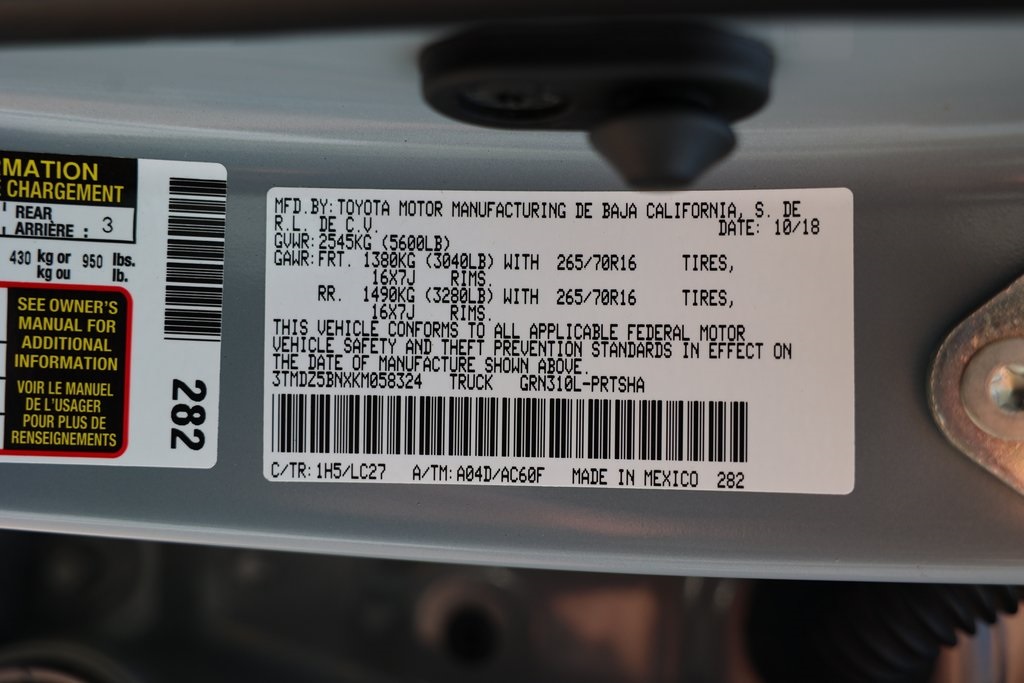 Priced below KBB Fair Purchase Price!LIFE TIME WARRANTY, FRESH OIL CHANGE, NEW FILTERS, NEW WIPERS, Tacoma TRD Offroad V6, 4D Double Cab, 3.5L V6 PDI DOHC 24V LEV3-ULEV70 278hp, 6-Speed Automatic, 4WD, 120V/400W Deck Mounted AC Power, ABS brakes, Active Cruise Control, Air Conditioning, Alloy wheels, Auto-Dimming Inside Rear-View Mirror w/Compass, Automatic Headlights, Black Overfenders, Blind Spot Monitor w/Rear Cross Traffic Alert, Color Keyed Rear Bumper, Dual Zone Automatic Climate Control, Electronic Stability Control, Engine Immobilizer, Entune App Suite, Heated Front Seats, Illuminated entry, Leather Seat Trim, LED Daytime Running Lamps, Low tire pressure warning, Power Tilt/Slide Moonroof, Radio: Entune Premium JBL AM/FM/CD w/Nav & App Ste, Rear Parking Assist Sonar, Remote keyless entry, Smart Key w/Push Button Start, Technology Package, Traction control, TRD Premium Off Road Package, Wide Angle Front Fog Lamps.For help with any Vehicle needs please call us directly at 951-621-1288.Clean CARFAX.CARFAX One-Owner.Awards: * 2019 KBB.com Brand Image Awards * 2019 KBB.com Best Resale Value Awards