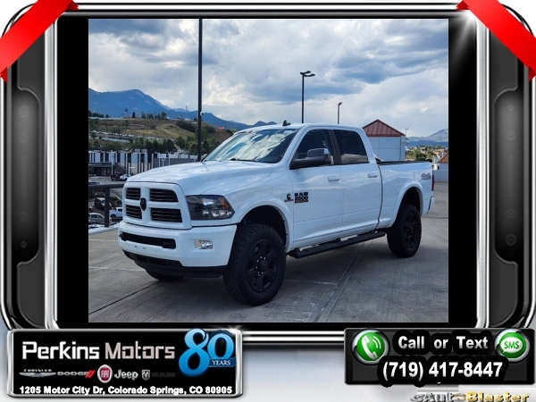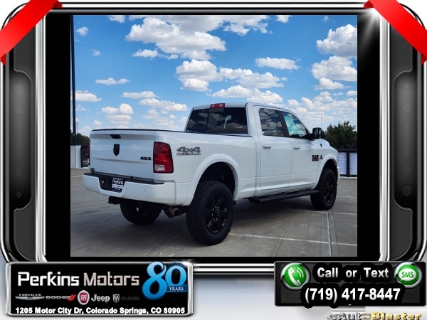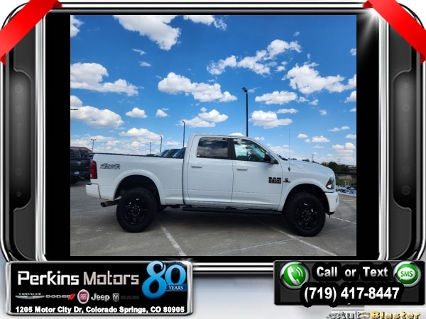 Bright White Clearcoat 4WD Cummins 6.7L I6 Turbodiesel 6-Speed Automatic<br><br>1 Year Trial (Registration Required), 115V Auxiliary Power Outlet, 3.42 Axle Ratio, 40/20/40 Split Bench Seat, 5-Year SiriusXM Traffic Service, 5-Year SiriusXM Travel Link Service, 8.4 Touchscreen Display, Air Conditioning ATC w/Dual Zone Control, Anti-Spin Differential Rear Axle, Auto-Dimming Exterior Mirrors, Auto-Dimming Rear-View Mirror, Big Horn Badge, Big Horn Regional Package, Black Headlamp Bezels, Black Ram Head Tailgate Badge, Black Wheel Center Hub, Body Color Door Handles, Body Color Fender Flares, Body Color Grille Surround w/Black Billet, Bright/Bright Billets Grille, Center Hub, Charge Only Remote USB Port, Cold Weather Group, Electroluminescent Instrument Cluster, Engine Block Heater, Exterior Mirrors Courtesy Lamps, Exterior Mirrors w/Supplemental Signals, Flat Black 4x4 Badge, Flat Black Ram 2500 Badge, Fog Lamps, Folding Flat Load Floor Storage, For Details Visit DriveUconnect.com, Front Armrest w/Cupholders, Front Center Seat Cushion Storage, Front Performance Tuned Shock Absorbers, Glove Box Lamp, GPS Antenna Input, GPS Navigation, HD Radio, Heated Front Seats, Heated Seats & Wheel Group, Heated Steering Wheel, Heavy Duty Snow Plow Prep Group, Integrated Voice Command w/Bluetooth, Leather Wrapped Steering Wheel, Luxury Group, Media Hub (2 USB, AUX), Off Road Package, Offroad Decal, Overhead Console w/Garage Door Opener, Painted Front Bumper, Painted Rear Bumper, ParkView Rear Back-Up Camera, Power 10-Way Driver Seat, Power Folding Mirrors, Power Lumbar Adjust, Premium Cloth 40/20/40 Bench Seat, Quick Order Package 2FZ Big Horn, Radio: Uconnect 3C Nav w/8.4 Display, Rear 60/40 Split Folding Seat, Rear Dome w/On/Off Switch Lamp, Rear Performance Tuned Shock Absorbers, Remote Start System, SiriusXM Satellite Radio, SiriusXM Traffic, SiriusXM Travel Link, Sport Appearance Group, Steering Wheel Mounted Audio Controls, Sun Visors w/Illuminated Vanity Mirrors, Tow Hooks, Uconnect Access, Underhood Lamp, Universal Garage Door Opener, Wheels: 18 x 8.0 Polished Aluminum, Wheels: 20 x 8.0 Black Painted Aluminum, Winter Front Grille Cover.<br><br><br>CARFAX One-Owner. Clean CARFAX.<br><br>Check us out at www.perkinsmotors.com to see our specials! Since opening our doors in 1944, we’ve been proud to serve Colorado Springs, CO, and the surrounding areas of Pueblo, Castle Rock and Denver, CO. Throughout this time of being family owned for 80 years, we’ve maintained a firm commitment to our customers: to offer a wide selection of New Chrysler, Dodge, Fiat, Jeep, and Ram vehicles and quality pre-owned vehicles, and provide a quick, no-hassle car-buying process that ensures everyone drives off the lot satisfied with their purchase.<br><br><br>Big Horn Regional Package, Cold Weather Group (Engine Block Heater and Winter Front Grille Cover), Heated Seats & Wheel Group (Heated Front Seats, Heated Steering Wheel, and Leather Wrapped Steering Wheel), Heavy Duty Snow Plow Prep Group, Luxury Group (Auto-Dimming Exterior Mirrors, Auto-Dimming Rear-View Mirror, Electroluminescent Instrument Cluster, Exterior Mirrors Courtesy Lamps, Exterior Mirrors w/Supplemental Signals, Glove Box Lamp, Overhead Console w/Garage Door Opener, Power Folding Mirrors, Rear Dome w/On/Off Switch Lamp, Steering Wheel Mounted Audio Controls, Sun Visors w/Illuminated Vanity Mirrors, and Universal Garage Door Opener), Off Road Package (Body Color Fender Flares, Front Performance Tuned Shock Absorbers, Offroad Decal, Rear Performance Tuned Shock Absorbers, and Tow Hooks), Quick Order Package 2FZ Big Horn (115V Auxiliary Power Outlet, 40/20/40 Split Bench Seat, Anti-Spin Differential Rear Axle, Big Horn Badge, Bright/Bright Billets Grille, Center Hub, Charge Only Remote USB Port, Fog Lamps, Folding Flat Load Floor Storage, Front Armrest w/Cupholders, Front Center Seat Cushion Storage, Power 10-Way Driver Seat, Power Lumbar Adjust, Premium Cloth 40/20/40 Bench Seat, Rear 6