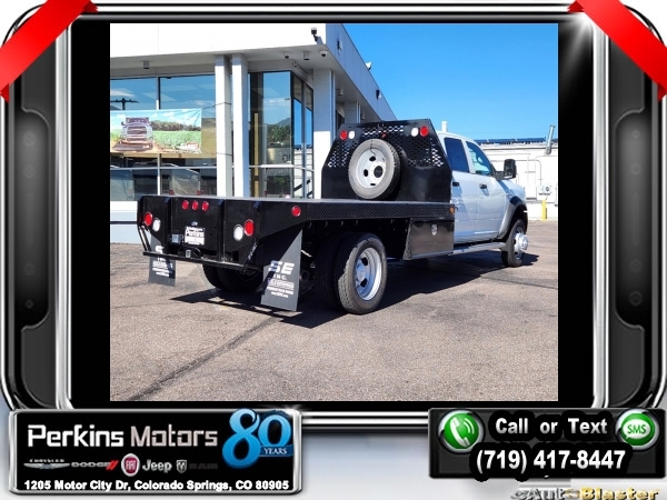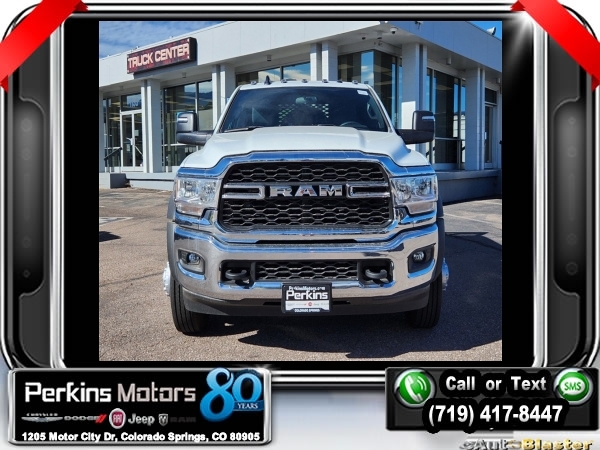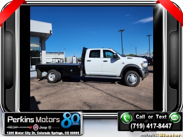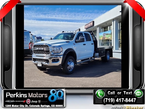 Factory MSRP: $80,695 Bright White Clearcoat 2024 Ram 5500HD Tradesman 4WD Aisin 6-Speed Automatic Cummins 6.7L I6 Turbodiesel<br>SCELZI FRONT RANGE FLATBED WITH 2 UNDERBODY BOXES.<br>Check us out at www.perkinsmotors.com to see our specials! Since opening our doors in 1944, we’ve been proud to serve Colorado Springs, CO, and the surrounding areas of Pueblo, Castle Rock and Denver, CO. Throughout this time of being family owned for 80 years, we’ve maintained a firm commitment to our customers: to offer a wide selection of New Chrysler, Dodge, Fiat, Jeep, and Ram vehicles and quality pre-owned vehicles, and provide a quick, no-hassle car-buying process that ensures everyone drives off the lot satisfied with their purchase.<br><br>Chrome Appearance Group (Bright Front Bumper, Chrome Headlamp Bezels, and Matte Black Mesh w/Chrome Grille), Electrical Accessory Group (Voltage Monitoring Auto Idle Up System), Max Tow Package (4.89 Axle Ratio), Quick Order Package 2YA Tradesman (Black Key Fob, Black Wheel Flares, Glove Box, and Map/Courtesy Lamp), 115V Auxiliary Power Outlet, 19.5 x 6.0 Steel Wheels, 4-Wheel Disc Brakes, 4.44 Axle Ratio, 40/20/40 Split Bench Seat, 6 Speakers, 87 mph Maximum Speed, ABS brakes, Air Conditioning, Black Exterior Mirrors, Compass, Cruise Control, Delay-off headlights, Driver door bin, Dual front impact airbags, Dual rear wheels, Electric Shift-On-The-Fly Transfer Case, Electronic Stability Control, Electronically Controlled Throttle, Emergency communication system: SiriusXM Guardian, For Details, Visit DriveUconnect.com, For More Info, Call 800-643-2112, Front anti-roll bar, Front Bucket Seats, Front Fog Lamps, Front License Plate Bracket, Front reading lights, Fully automatic headlights, Global Telematics Box Module (TBM), GPS Antenna Input, HD Vinyl 40/20/40 Split Bench Seat, Integrated Voice Command w/Bluetooth, Manual Adjust 4-Way Driver Seat, Manual Adjust 4-Way Front Passenger Seat, Manual Folding Exterior Mirrors, Manufacturer's Statement of Origin, Occupant sensing airbag, Outside temperature display, Passenger door bin, Passenger vanity mirror, Power steering, Power windows, Radio data system, Radio: Uconnect 3 w/5 Display, Rear anti-roll bar, Rear Folding Seat, Remote Keyless Entry, SiriusXM Radio Service, Tachometer, Temperature & Compass Gauge, Tilt steering wheel, Traction control, Trailer Brake Control, Tubular Side Steps, Variably intermittent wipers, and VoltmeteR. $1,000 - Exp. 01/02/2025 Price includes $11,995 in dealer added accessories.