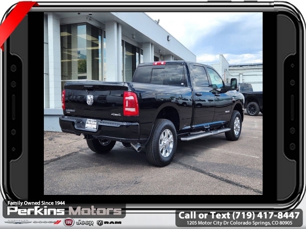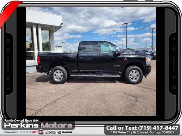 Factory MSRP: $83,675 $14,598 off MSRP! Priced below KBB Fair Purchase Price! Diamond Black Crystal Pearlcoat 2024 Ram 2500 Laramie 4WD 6-Speed Automatic Cummins 6.7L I6 Turbodiesel<br><br>Check us out at www.perkinsmotors.com to see our specials! Since opening our doors in 1944, we’ve been proud to serve Colorado Springs, CO, and the surrounding areas of Pueblo, Castle Rock and Denver, CO. Throughout this time of being family owned for 80 years, we’ve maintained a firm commitment to our customers: to offer a wide selection of New Chrysler, Dodge, Fiat, Jeep, and Ram vehicles and quality pre-owned vehicles, and provide a quick, no-hassle car-buying process that ensures everyone drives off the lot satisfied with their purchase.<br><br>Cold Weather Group (Engine Block Heater and MOPAR Winter Front Grille Cover), Heavy Duty Snow Plow Prep Group (220 Amp Alternator), Laramie Level B Equipment Group (12 Touchscreen Display, 17 Speaker harman/kardon Premium Sound, 2nd Row In Floor Storage Bins, 4G LTE Wi-Fi Hot Spot, Alexa Built-In, Apple CarPlay, Auto Adjust In Reverse Exterior Mirrors, Auto Dim Exterior Mirror, Auto High Beam Headlamp Control, Auto Power-Folding Mirrors, Auto-Dimming Exterior Passenger Mirror, Blind Spot & Cross Path Detection, Center Hub, Chrome Exterior Mirrors, Connected Travel & Traffic Services, Connectivity - US/Canada, Disassociated Touchscreen Display, Exterior Mirrors Courtesy Lamps, Exterior Mirrors w/Heating Element, Exterior Mirrors w/Memory, Exterior Mirrors w/Supplemental Signals, Foam Bottle Insert (Door Trim Panel), For Details, Visit DriveUconnect.com, For More Info, Call 800-643-2112, Forward & Reverse Utility Lights, Front LED Fog Lamps, Global Telematics Box Module (TBM), Google Android Auto, GPS Antenna Input, GPS Navigation, HD Radio, Heated Second Row Seats, Integrated Voice Command w/Bluetooth, LED Reflector Headlamps, LED Tail Lamps, Mirror Running Lights, Off-Road Information Pages, ParkSense Front/Rear Park Assist System, Power Adjust Mirrors, Power Adjustable Convex Aux Mirrors, Power Adjustable Pedals w/Memory, Power Heated Fold Telescopic Mirrors w/Memory, Power Telescoping Mirrors, Radio: Uconnect 5 Nav w/12.0 Display, Rain Sensitive Windshield Wipers, Rear Power Sliding Window, Rear Window Defroster, Remote Tailgate Release, Selectable Tire Fill Alert, SiriusXM Radio Service, SiriusXM w/360L, Trailer Tow Pages, and Wheels: 18 x 8.0 Polished Aluminum), Protection Group (Tow Hooks), Quick Order Package 2HH Laramie, Safety Group (Adaptive Cruise Control w/Stop, Adaptive Steering System, Full Speed Forward Collision Warning Plus, and Lane Keep Assist), 10 Speakers, 115V Auxiliary Rear Power Outlet, 2 Way Rear Headrest Seat, 3.73 Axle Ratio, 4 Way Front Headrests, 4-Wheel Disc Brakes, 5th Wheel/Gooseneck Towing Prep Group, ABS brakes, Active Noise Control System, Air Conditioning, Alloy wheels, AM/FM radio: SiriusXM with 360L, Apple CarPlay/Android Auto, Auto Level Rear Air Suspension, Automatic temperature control, Brake assist, Bumpers: body-color, Chrome Flat Wheel-to-Wheel Side Steps, Compass, Cruise Control, Delay-off headlights, Driver door bin, Driver vanity mirror, Dual front impact airbags, Dual front side impact airbags, Electronic Stability Control, Electronically Controlled Throttle, Front anti-roll bar, Front Center Armrest w/Storage, Front dual zone A/C, Front License Plate Bracket, Front reading lights, Front Seat Back Map Pockets, Fully automatic headlights, Garage door transmitter, Heated door mirrors, Heated Front Seats, Heated front seats, Heated Steering Wheel, Heated steering wheel, Illuminated entry, Leather steering wheel, Leather Trim 40/20/40 Bench Seat, Low tire pressure warning, Manufacturer's Statement of Origin, MOPAR Spray In Bedliner, Navigation S Sale price includes all manufacture's incentives and dealer discounts. Sale price not available on lease or compatible with special APR. $8126 - 2024 National Minimum Employee Pricing Discount . Exp. 0
