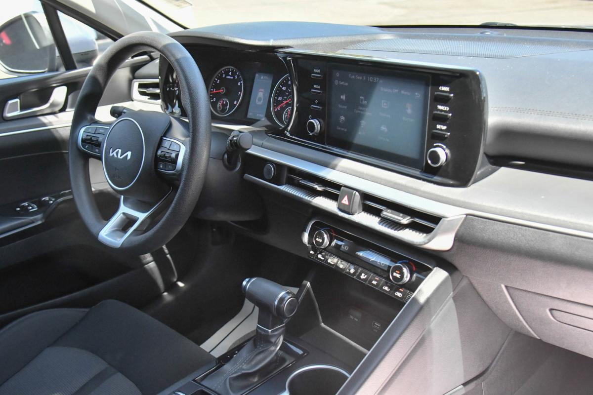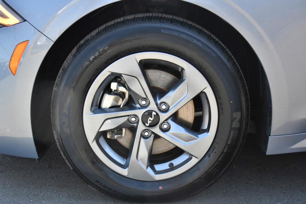 Delivers 37 Highway MPG and 27 City MPG! This Kia K5 boasts a Intercooled Turbo Regular Unleaded I-4 1.6 L/98 engine powering this Automatic transmission. EVERLASTING SILVER, CARPETED FLOOR MATS, BLACK, CLOTH SEAT TRIM.*This Kia K5 Features the Following Options *Window Grid Antenna, Wheels: 6.5J x 16 Gray Alloy, Variable Intermittent Wipers, Urethane Gear Shifter Material, Turn-By-Turn Navigation Directions, Trunk Rear Cargo Access, Trip Computer, Transmission: 8-Speed Automatic -inc: drive mode select system, Transmission w/Sequential Shift Control, Tires: P205/65R16 95H.