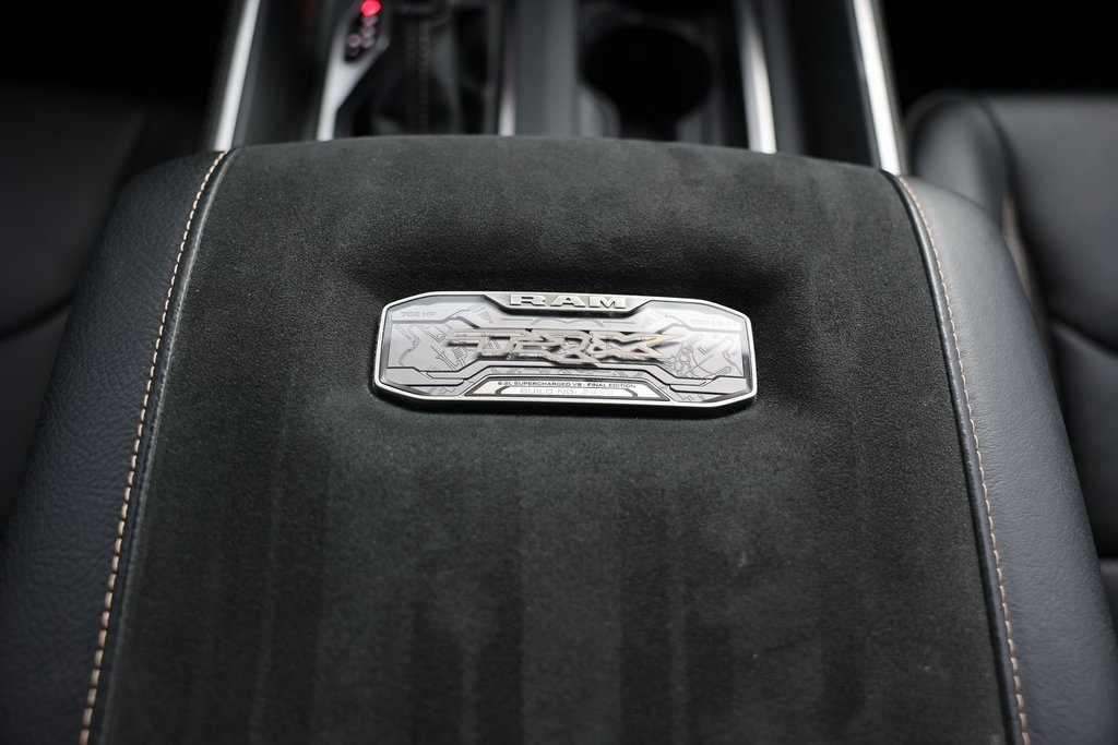 FACTORY WARRANTY, BELOW AVERAGE ODOMETER, FRESH OIL CHANGE, NEW FILTERS, NEW WIPERS, SUPERCHARFED, FINAL EDITION, PAINT PROTECTION KIT, CERAMIC PRO, POWDERCOAST WHEELS, BAJA DESIGNS WIRING, SQUADRON PRO, REMOTE RADAR SYSTEM, LASER OPTIC DIFFUSER 2 PACK, 1500 TRX Custom Build $55k in adds, 4D Crew Cab, 6.2L Supercharged HEMI V8 SRT, 8-Speed Automatic, 4WD, #2 Seat Foam Cushion, 2-Door Passive Entry, Front Door Locks, 4 Way Front Headrests, 6.2L Supercharged V8 Final Edition, Accent Color Door Handles, Adaptive Cruise Control w/Stop & Go, Blind Spot & Cross Path Detection, Bucket Seats, Compass, Digital Rearview Mirror, Dome Dual LED Reading Lamp, Driver Seat Memory, Driver/Passenger Wrapped Assist Handles, Dual-Pane Panoramic Sunroof, Exterior Mirrors w/Memory, Front Door Accent Lighting, Front dual zone A/C, Front fog lights, Front Seat Back Map Pockets, Full Length Premium Upgraded Floor Console, harman/kardon 19 Speaker Premium Sound, Heads-Up Display, Heated Front Seats, Heated Second Row Seats, Heated Steering Wheel, IP LED Ambient Light Pipe, Lane Keep Assist, Leather Trimmed Bucket Seats, Leather/Carbon Flat-Bottom Steering Wheel, Leather/Suede Flat-Bottom Steering Wheel, LED CHMSL Lamp, Low tire pressure warning, Luxury Front Door Trim Panel, MOPAR 4 Adjustable Cargo Tie-Down Hooks, MOPAR Bright Pedal Kit, MOPAR Deployable Bed Step, MOPAR Off-Road Style Running Boards, MOPAR Spray In Bedliner, MOPAR TRX Hood Graphics, Navigation System, Overhead airbag, ParkSense Front/Rear Park Assist w/Stop, Patina Accent Stitching, Pedestrian Emergency Braking, Pick-Up Box Lighting, Power 4-Way Driver Lumbar Adjust, Power 4-Way Passenger Lumbar Adjust, Power 8-Way Driver & Passenger Seats, Power Adjustable Pedals w/Memory, Premium Wrapped IP Bezel, Radio: Uconnect 5 Nav w/12.0" Display, Radio/Driver Seat/Mirrors/Pedals Memory, Rain Sensitive Windshield Wipers, Real Carbon Fiber Interior Accents, Rear 60/40 Folding Seat, Rear 60/40 Folding Split Recline Seat, Rear Door Accent Lighting, Rear Underseat Compartment Storage, Rear Window Defroster, Remote Tailgate Release, Special Edition Console Badge, Special Edition Hood Badge, Sun Visors w/Illuminated Vanity Mirrors, Surround View Camera System, Trailer Brake Control, Trailer Light Check, Trailer Reverse Steering Control, Trailer Tire Pressure Monitoring System, Tri-Fold Tonneau Cover, TRX Level 2 Equipment Group, TRX Special Edition Side Graphics, Universal Garage Door Opener, Ventilated Front Seats, Ventilated Rear Seats, Wheels: 18" x 9" Bead Lock Aluminum, Wireless Charging Pad.For help with any Vehicle needs please call us directly at 951-621-1288.CARFAX One-Owner.