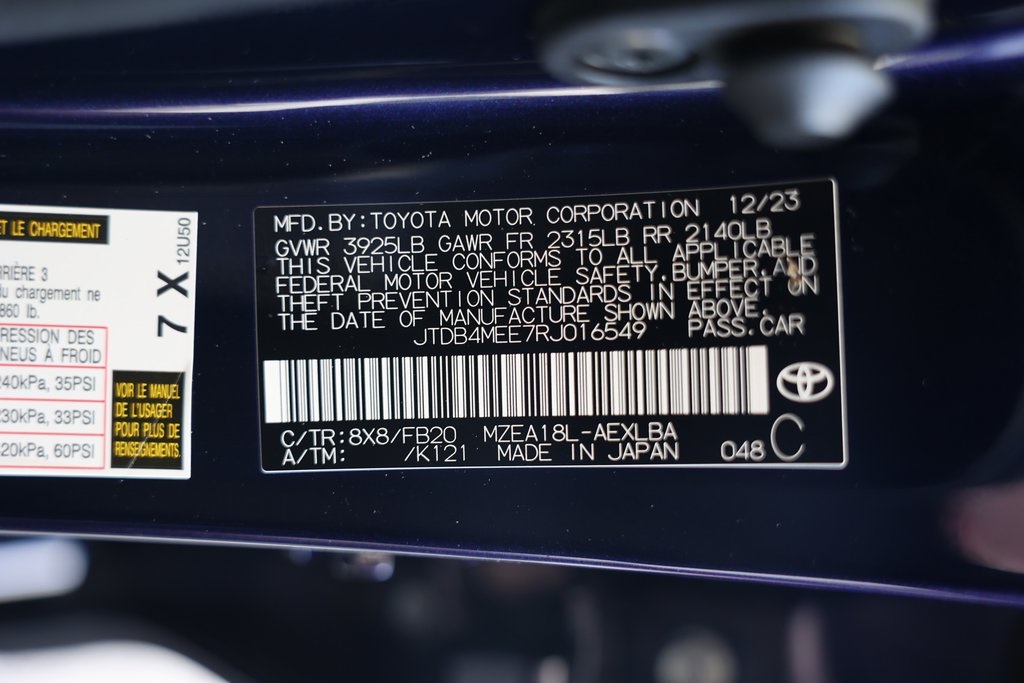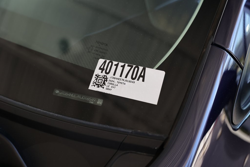 Blueprint 2024 Toyota Corolla LE FWD CVT 2.0L I4 DOHC 16V 16" Steel Wheels w/Covers, 6 Speakers, Air Conditioning, Brake assist, Electronic Stability Control, Exterior Parking Camera Rear, Fabric Seat Trim, Front Bucket Seats, Fully automatic headlights, Panic alarm, Radio: 8" Toyota Audio Multimedia.32/41 City/Highway MPG