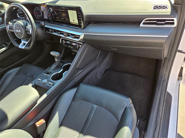 Priced below KBB Fair Purchase Price!25/33 City/Highway MPGGlacial White Pearl 2022 Kia K5 GT-Line AWD 8-Speed Automatic I4If you don't drive here, you can't save here!Price may not include recon fee. GT-Line AWD Premium Package (Forward Collision Avoidance-Assist - Cyclist, Gloss Black Pillar & Door Frame Cover, Heated Steering Wheel, Highway Driving Assist, LED Interior Lighting, and Panoramic Sunroof), 4-Wheel Disc Brakes, 6 Speakers, ABS brakes, Air Conditioning, Alloy wheels, AM/FM radio: SiriusXM, Apple CarPlay & Android Auto, Auto High-beam Headlights, Automatic temperature control, Brake assist, Bumpers: body-color, Carpeted Floor Mats, Cloth/Leatherette Seat Trim, Delay-off headlights, Driver door bin, Driver vanity mirror, Dual front impact airbags, Dual front side impact airbags, Electronic Stability Control, Four wheel independent suspension, Front anti-roll bar, Front Center Armrest, Front dual zone A/C, Front fog lights, Front reading lights, Fully automatic headlights, Heated door mirrors, Illuminated entry, Knee airbag, Low tire pressure warning, Navigation System, Occupant sensing airbag, Outside temperature display, Overhead airbag, Overhead console, Panic alarm, Passenger door bin, Passenger vanity mirror, Power door mirrors, Power driver seat, Power steering, Power windows, Radio data system, Radio: AM/FM/MP3 Audio System, Rear anti-roll bar, Rear seat center armrest, Rear side impact airbag, Rear window defroster, Remote keyless entry, Security system, Speed control, Speed-sensing steering, Split folding rear seat, Spoiler, Sport steering wheel, Steering wheel mounted audio controls, Tachometer, Telescoping steering wheel, Tilt steering wheel, Traction control, Trip computer, Turn signal indicator mirrors, Variably intermittent wipers, and Wheels: 7.5J x 18" Gloss Black Machined Finish Alloy.