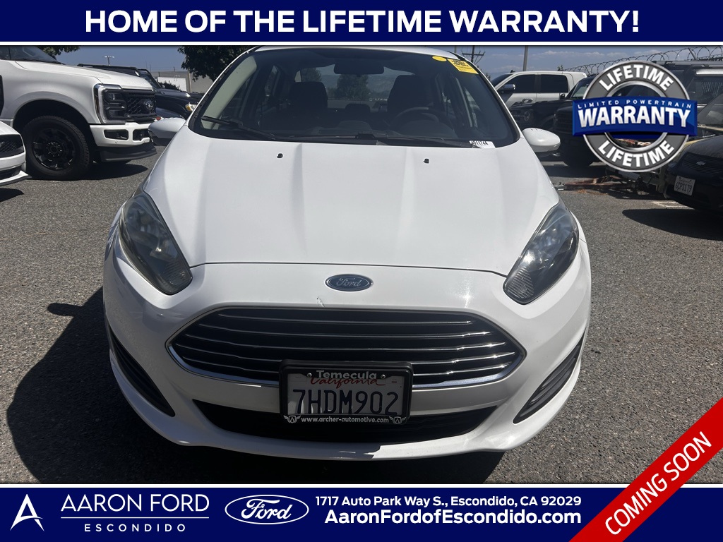 White 2014 Ford Fiesta SE FWD 6-Speed Automatic 1.6L I4 Ti-VCT 15" Painted Aluminum Wheels, 6 Speakers, Air Conditioning, Equipment Group 200A, Fully automatic headlights, Radio: AM/FM Stereo/CD Player/MP3 Capable, SYNC Communications & Entertainment System, Unique Cloth Front Bucket Seats.Recent Arrival! 28/36 City/Highway MPGAwards: * 2014 KBB.com 10 Coolest New Cars Under $18,000 * 2014 KBB.com 10 Tech-Savviest Cars Under $20,000 * 2014 KBB.com Brand Image AwardsReviews: * If you’re looking for a fuel-efficient small car, but you don’t want to sacrifice the interior quality or modern features usually found only on larger, more expensive models, the 2014 Ford Fiesta sub-compact is a good choice. Source: KBB.com * Sporty driving dynamics, particularly with the ST model; refined yet lively base engine; strong fuel economy; welcoming cabin; available luxury features. Source: Edmunds * With its bright hues like Green Envy and Molten Orange, the 2014 Ford Fiesta is highly capable and a joy to drive. It achieves up to 34 MPG City and 43 MPG Highway. The available Ford SYNC system lets you make hands-free calls, stream music from a compatible phone via Bluetooth, and hear turn-by-turn directions through your speakers. The Fiesta delivers 120 horsepower of fun from its 1.6-Liter I-4 engine, or an intense rush when behind the wheel of the All-new Fiesta ST with its 197 horsepower turbocharged engine. Twin independent variable camshaft timing (Ti-VCT) adds an extra measure of precision, improving fuel efficiency and power output. For that extra-connected feel, the PowerShift 6-speed automatic transmission can provide torque to the wheels 100 percent of the time during shifts. The electric power-assisted steering gives compensation for pulling and drifting. To help Fiesta stay sure-footed and firmly planted in the corners, a MacPherson-strut front suspension features specially tuned dampers, spring rates and bushings, and a 22-mm stabilizer bar. Check out stylish options like Charcoal Black Leather-trimmed seats with Molten Orange Cloth Accents. On the ST trim get the available RECARO seats, which hold you in place during intense drives with their supportive bolsters. There are also available features like heated front seats and ambient lighting with 7 different hues. For space, Fiesta's 60/40 split rear seat folds down, opening up additional room for your gear. Pass-through access from the trunk increases usable space in the sedan. The Fiesta won "Top Safety Pick" - the highest possible rating from the Insurance Institute for Highway Safety (IIHS) - 3 years in a row (2011-2013). Underneath its aerodynamic shape, an ultra-high-strength boron safety cage protects you and your passengers. In addition, the AdvanceTrac electronic stability control helps keep all 4 wheels securely on the road. Get yours today and go further with the 2014 Fiesta. Source: The Manufacturer Summary