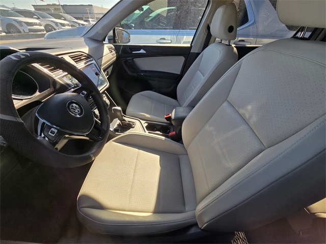 Priced below KBB Fair Purchase Price!Odometer is 13907 miles below market average!22/29 City/Highway MPGSilver 2020 Volkswagen Tiguan 2.0T SE FWD 8-Speed Automatic with Tiptronic 2.0L TSI DOHCIf you don't drive here, you can't save here!Price may not include recon fee. 3.33 Axle Ratio, 3rd row seats: bench, 4-Wheel Disc Brakes, 4-Wheel Independent Suspension, 6 Speakers, ABS brakes, Air Conditioning, Alloy wheels, AM/FM radio: SiriusXM, Automatic temperature control, Brake assist, Bumpers: body-color, Compass, Delay-off headlights, Driver door bin, Driver vanity mirror, Dual front impact airbags, Dual front side impact airbags, Electronic Stability Control, Emergency communication system: VW Car-Net services (capabilities require enrollment or subscription), Exterior Parking Camera Rear, Forward collision: FCW w/Autonomous Emergency Braking mitigation, Four wheel independent suspension, Front anti-roll bar, Front Bucket Seats, Front Center Armrest, Front dual zone A/C, Front reading lights, Fully automatic headlights, Heated door mirrors, Heated Front Comfort Seats, Heated front seats, Illuminated entry, Leather Shift Knob, Low tire pressure warning, Occupant sensing airbag, Outside temperature display, Overhead airbag, Overhead console, Panic alarm, Passenger door bin, Passenger vanity mirror, Perforated V-Tex Leatherette Seating Surfaces, Power door mirrors, Power driver seat, Power steering, Power windows, Radio data system, Rear anti-roll bar, Rear reading lights, Rear seat center armrest, Rear window defroster, Rear window wiper, Remote keyless entry, Roof rack: rails only, Security system, Speed control, Speed-sensing steering, Split folding rear seat, Spoiler, Steering wheel mounted audio controls, Tachometer, Telescoping steering wheel, Tilt steering wheel, Traction control, Trip computer, Turn signal indicator mirrors, Variably intermittent wipers, and VW App-Connect (w/Apple CarPlay, Android Auto & MirrorLink)