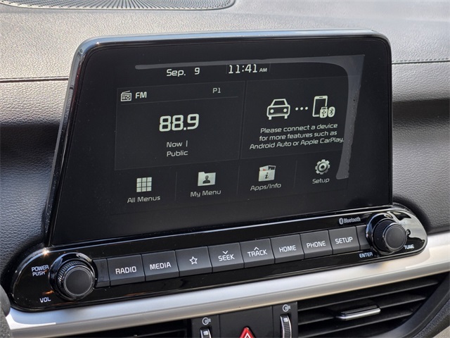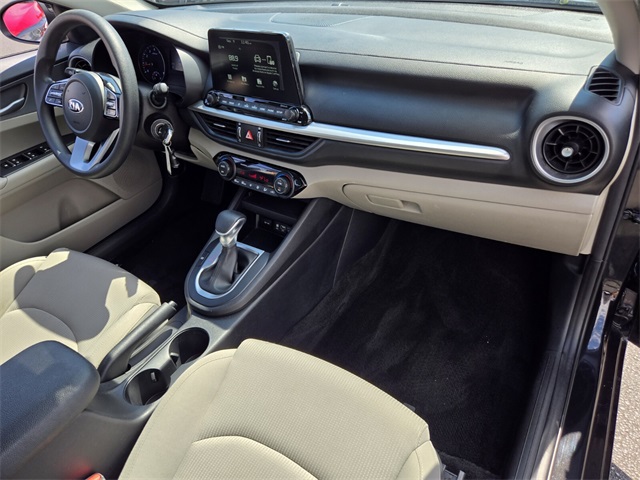 Recent Arrival!Odometer is 12228 miles below market average!Aurora Black Pearl 2019 Kia Forte LXS FWD 2.0L I4 DOHC Dual CVVTIf you don't drive here, you can't save here!Awards: * 2019 KBB.com 10 Best Sedans Under $30,000Price may not include recon fee. 4 Speakers, 4-Wheel Disc Brakes, ABS brakes, Air Conditioning, AM/FM radio, Apple CarPlay & Android Auto, Automatic temperature control, Brake assist, Bumpers: body-color, Cargo Net, Carpeted Floor Mats, Delay-off headlights, Driver door bin, Driver vanity mirror, Dual front impact airbags, Dual front side impact airbags, Electronic Stability Control, Exterior Parking Camera Rear, Front anti-roll bar, Front Bucket Seats, Front Center Armrest, Front dual zone A/C, Front reading lights, Front wheel independent suspension, Fully automatic headlights, Illuminated entry, Low tire pressure warning, Occupant sensing airbag, Overhead airbag, Overhead console, Panic alarm, Passenger door bin, Passenger vanity mirror, Power door mirrors, Power steering, Power windows, Radio data system, Radio: UVO Play AM/FM/MP3 Audio System, Rear window defroster, Remote keyless entry, Security system, Speed control, Steering wheel mounted audio controls, Tachometer, Telescoping steering wheel, Tilt steering wheel, Traction control, Trip computer, Variably intermittent wipers, and Woven Cloth Seat Trim.