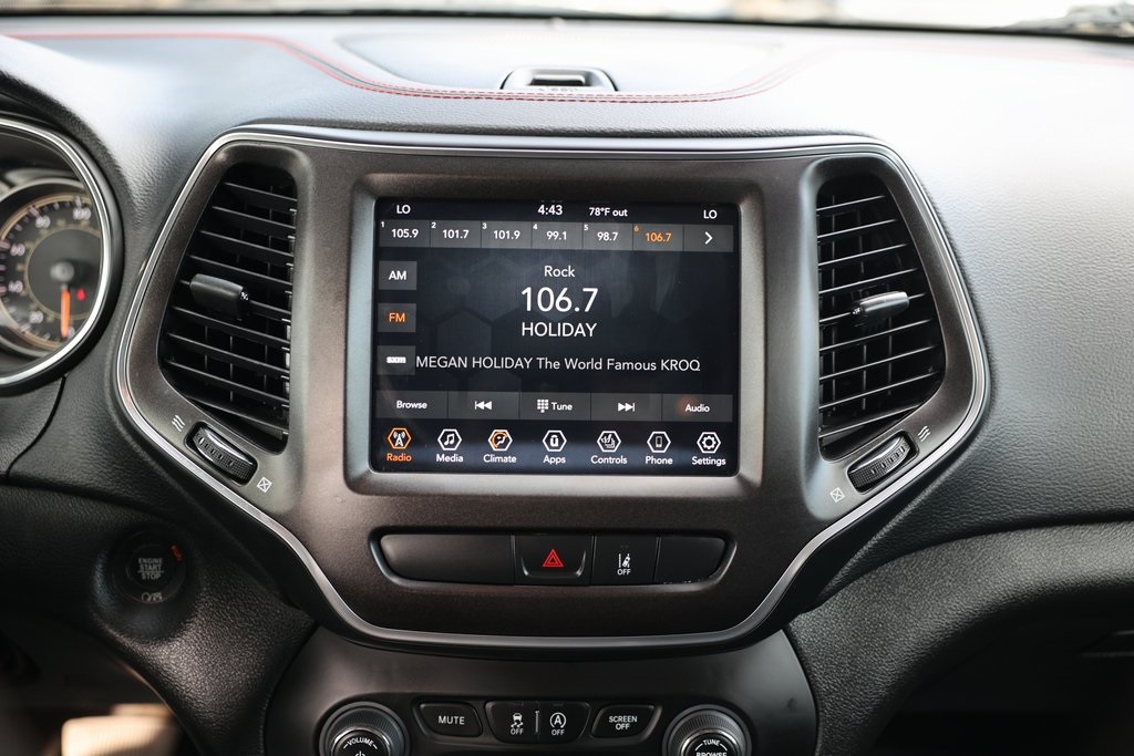 Priced below KBB Fair Purchase Price!FACTORY WARRANTY, LIFE TIME WARRANTY, FRESH OIL CHANGE, NEW FILTERS, NEW WIPERS, NEW BRAKES, Cherokee Trailhawk, 4D Sport Utility, 3.2L V6, 9-Speed 948TE Automatic, 4WD, 8.4" Touchscreen Display, Alloy wheels, Apple CarPlay/Android Auto, Compass, Front dual zone A/C, Front fog lights, GPS Antenna Input, Heated front seats, Knee airbag, Low tire pressure warning, Overhead airbag, ParkView Rear Back-Up Camera, Quick Order Package 27E, Radio: Uconnect 4 w/8.4" Display, Roof rack: rails only, USB Host Flip.Clean CARFAX.CARFAX One-Owner.