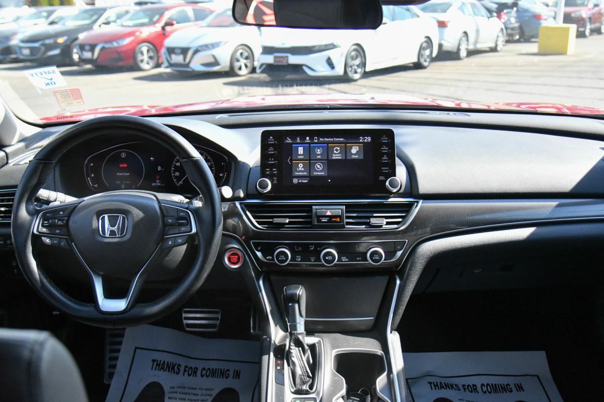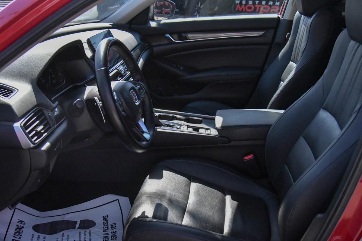 Scores 35 Highway MPG and 29 City MPG! This Honda Accord Sedan delivers a Intercooled Turbo Regular Unleaded I-4 1.5 L/91 engine powering this Variable transmission. Wheels: 19 Machine-Finished Alloy w/Black Inserts, Vehicle Stability Assist (VSA) Electronic Stability Control (ESC), Valet Function.*This Honda Accord Sedan Features the Following Options *Trunk Rear Cargo Access, Trip Computer, Transmission: Continuously Variable -inc: sport mode and paddle shifters, Tires: 235/40R19 96V AS, Strut Front Suspension w/Coil Springs, Steel Spare Wheel, Speed Sensitive Variable Intermittent Wipers, Side Impact Beams, Seats w/Leatherette Back Material, Remote Releases -Inc: Power Cargo Access.