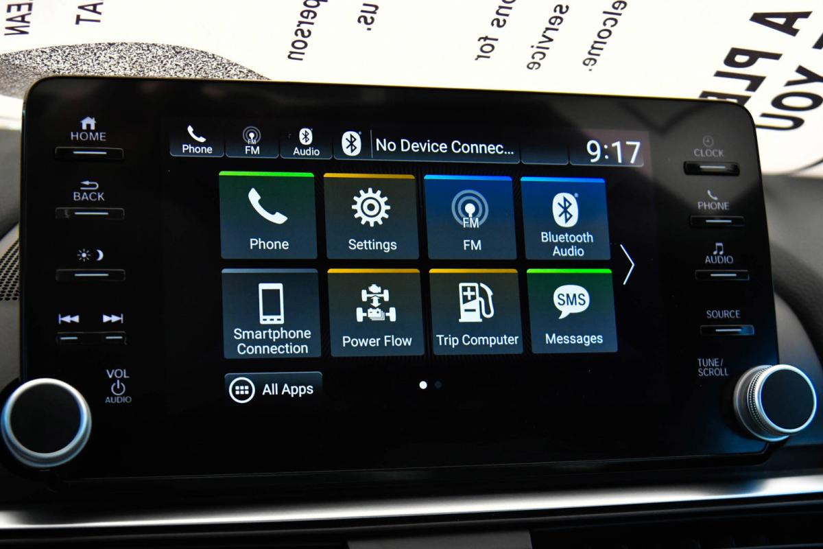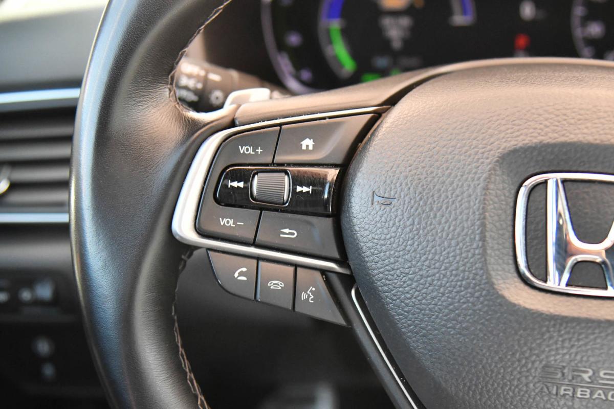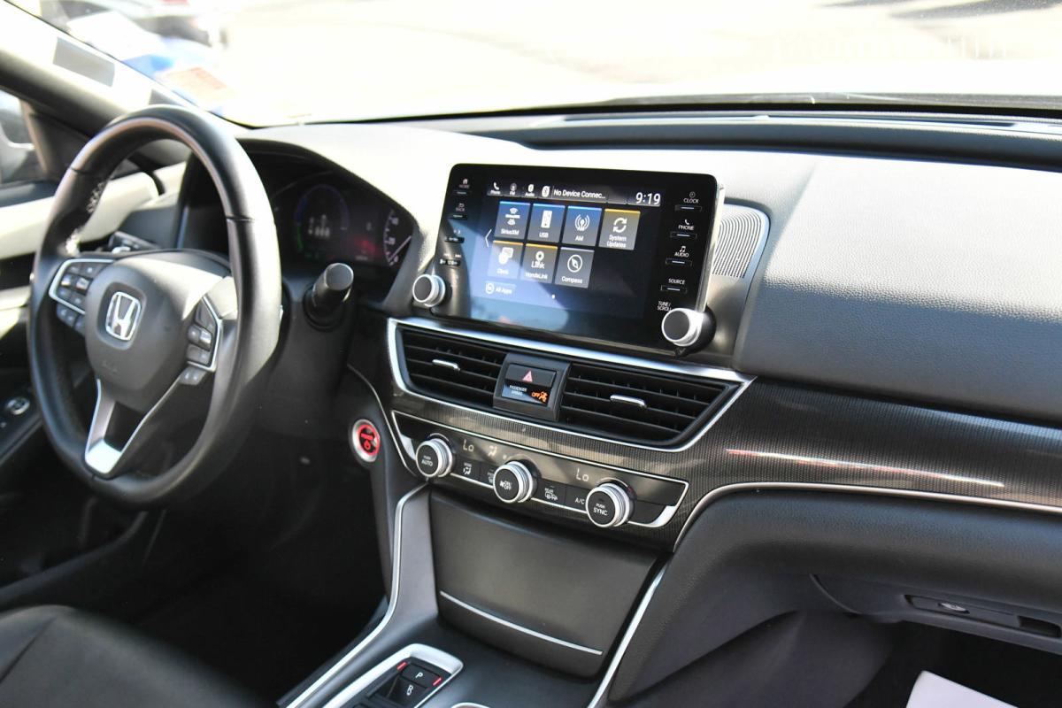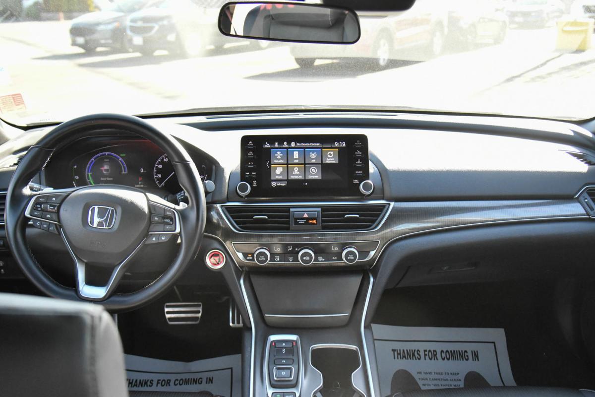 Scores 41 Highway MPG and 44 City MPG! This Honda Accord Hybrid delivers a Gas/Electric I-4 2.0 L/122 engine powering this Variable transmission. Wheels: 19 Machine-Finished Alloy w/Black Inserts, Vehicle Stability Assist (VSA) Electronic Stability Control (ESC), Valet Function.*This Honda Accord Hybrid Features the Following Options *Trunk Rear Cargo Access, Trip Computer, Transmission: Electronic Continuously Variable -inc: sport mode and deceleration selectors, Tires: 235/40R19 96V AS, Tire mobility kit, Strut Front Suspension w/Coil Springs, Speed Sensitive Variable Intermittent Wipers, Single Stainless Steel Exhaust, Side Impact Beams, Seats w/Cloth Back Material.