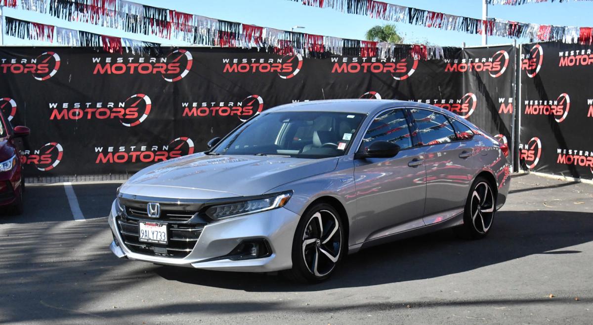 Scores 41 Highway MPG and 44 City MPG! This Honda Accord Hybrid delivers a Gas/Electric I-4 2.0 L/122 engine powering this Variable transmission. Wheels: 19 Machine-Finished Alloy w/Black Inserts, Vehicle Stability Assist (VSA) Electronic Stability Control (ESC), Valet Function.*This Honda Accord Hybrid Features the Following Options *Trunk Rear Cargo Access, Trip Computer, Transmission: Electronic Continuously Variable -inc: sport mode and deceleration selectors, Tires: 235/40R19 96V AS, Tire mobility kit, Strut Front Suspension w/Coil Springs, Speed Sensitive Variable Intermittent Wipers, Single Stainless Steel Exhaust, Side Impact Beams, Seats w/Cloth Back Material.