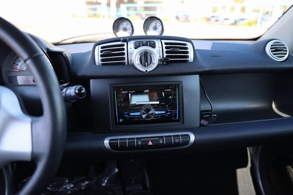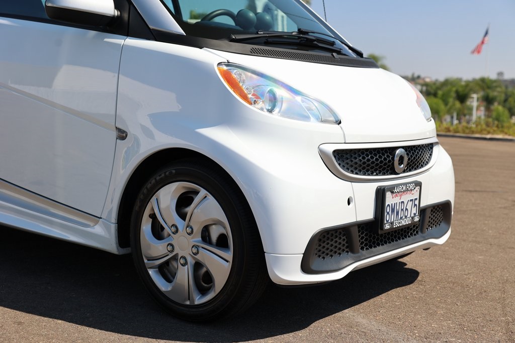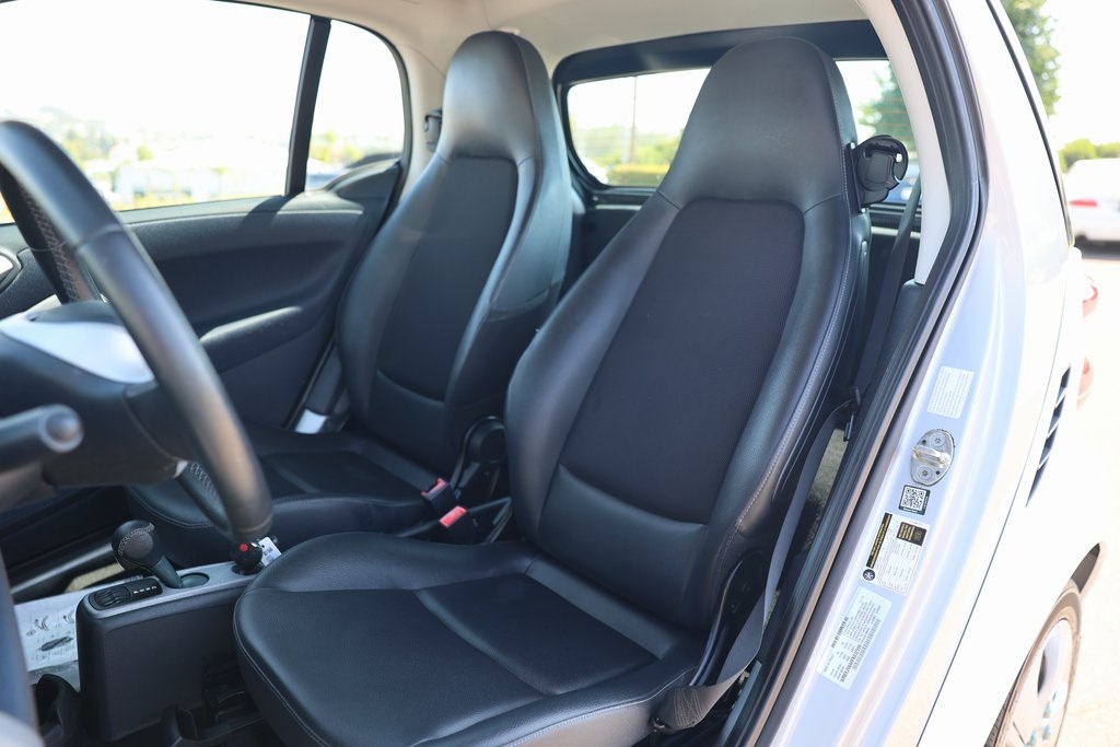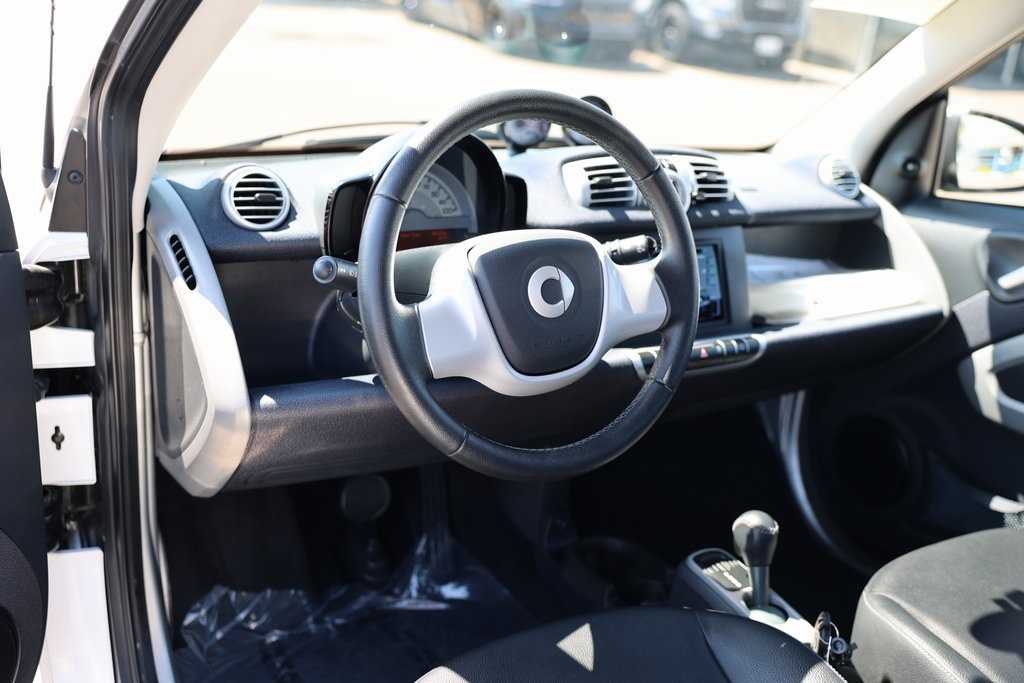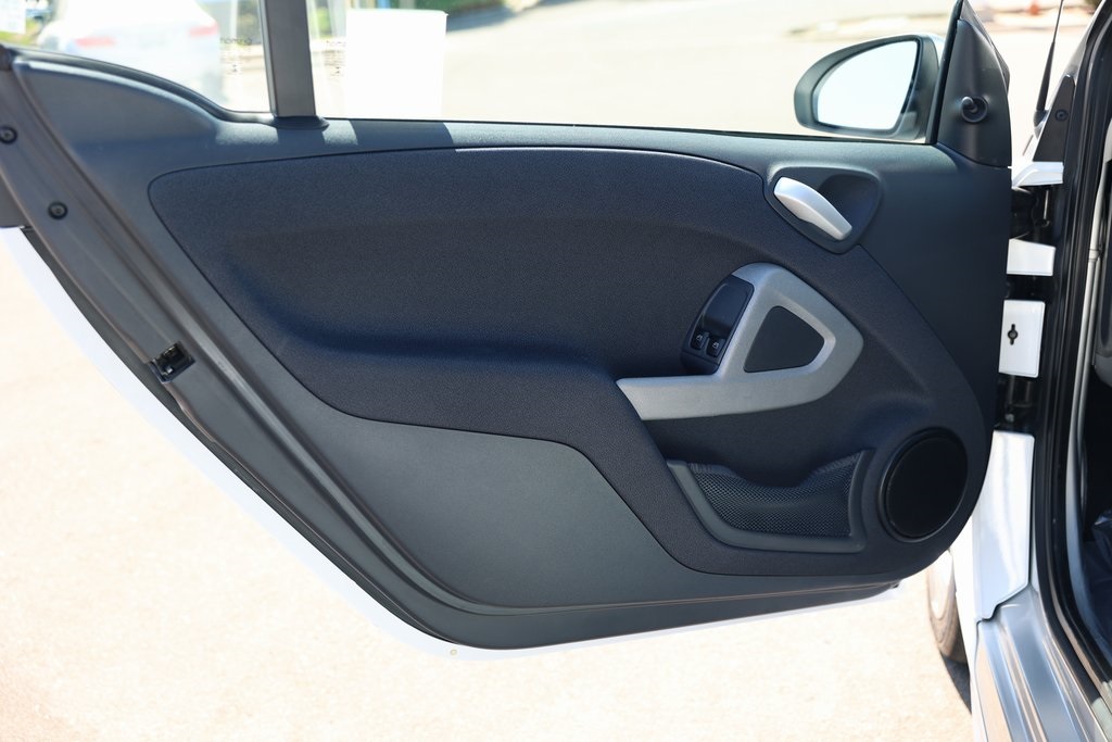 Crystal White 2015 smart Fortwo electric drive Passion RWD Single-Speed Automatic Electric Motor 2 Speakers, Air Conditioning, Brake assist, Cloth Seat Trim, Electronic Stability Control, Fully automatic headlights, Wheels: 15 x 4.5J Fr & 15 x 5.5J Rr 12-Spoke Alloy.Odometer is 16402 miles below market average! 122/93 City/Highway MPGReviews: * Smarts are more than meets the eye. A special honeycomb structure and sleek side skirts secure the 2015 smart fortwo as beacon of style and utility. The grille conveys a new aggressive attitude and the redesigned rear further complements the fortwo as one mean machine. The smart, at its heart, is all about customization. There are 14 separate, customizable body panels available, as well as 7 standard panel options. Taking it even further, there are interior color options available and 7 different body colors. The smart, when is not busy looking good, is considerably efficient and considerately designed. Each smart is 85 percent recyclable. That combined with the 38 mpg highway that the smart is capable of, ensures you can feel great about being green and looking good. Inside, the steering wheel and shift knob are wrapped in leather for a clean grip. An auxiliary MP3 audio input and a USB connection means you can listen to what you want, when you want. There is also 39.7 in. of headroom in the smart and a surprising amount of cargo space. The smart features the smartshift transmission, which means that you have the option of a manual or an automatic shifting mode. Additionally, the electronic stability program means the smart stays steady, even if the road is anything but straight and narrow. This along with the 28 ft. turning radius means you can really cut loose on the road. A reinforced steel tridion safety cell is engineered to be a barrier between you and pretty much anything. Inspired by racecar roll cages, it distributes energy to help keep you safe in a crash. All smart coupes are equipped to safeguard your sides, knees and front with 8 full-size airbags (6 in the cabriolet). Source: The Manufacturer Summary
