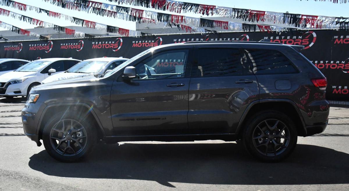 Boasts 25 Highway MPG and 18 City MPG! This Jeep Grand Cherokee delivers a Regular Unleaded V-6 3.6 L/220 engine powering this Automatic transmission. TRANSMISSION: 8-SPEED AUTOMATIC (850RE) (STD), QUICK ORDER PACKAGE 2BK 80TH -inc: Engine: 3.6L V6 24V VVT UPG I w/ESS, Transmission: 8-Speed Automatic (850RE), Front Accent/Body Color Fascia, Parallel & Perp Park Assist w/Stop, Rain Sensitive Windshield Wipers, Granite Crystal Exterior Badging, Body Color Door Handles, Body Color Shark Fin Antenna, Rear Accent/Body Color Fascia, Black Roof Molding, Dark Headlamp Bezel Finish, Body Color Claddings, Granite Crystal Exterior Mirror Caps, Jeep 80th Anniversary Badges, Berber Floor Mats w/80th Anniversary Tag, Advanced Brake Assist, Jeep 80th Anniversary Edition, Full Speed FWD Collision Warn Plus, Granite Crystal/Black Grille, LT, Tungsten Interior Accent Stitching, Dark Day Light Opening Moldings, Piano Black/Anod, Gunmetal Interior Accents, Adaptive Cruise Control w/Stop, Dark Lens Taillamps, Granite Crystal Exterior Accents, Lane Departure Warning Plus, PREMIUM LIGHTING GROUP -inc: Bi-Xenon HID Headlamps, LED Daytime Running Headlamps, Auto High Beam Headlamp Control, Front LED Fog Lamps.*This Jeep Grand Cherokee Comes Equipped with These Options *FRONT LICENSE PLATE BRACKET, ENGINE: 3.6L V6 24V VVT UPG I W/ESS (STD), BLACK, LEATHER TRIMMED BUCKET SEATS (JY), 80TH ANNIVERSARY LUXURY GROUP -inc: 506 Watt Amplifier, Power Tilt/Telescope Steering Column, Cargo Compartment Cover, Premium Alpine Speaker System, Active Noise Control System, Heated Second Row Seats, Dual-Pane Panoramic Sunroof, Ventilated Front Seats, Wheels: 20 x 8.0 Granite Crystal Aluminum, Voice Activated Dual Zone Front Automatic Air Conditioning, Valet Function, Trip Computer, Transmission: 8-Speed Automatic (850RE), Transmission w/Driver Selectable Mode and Sequential Shift Control.
