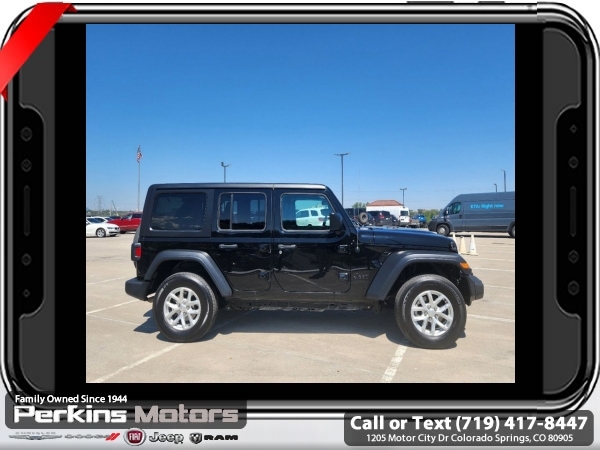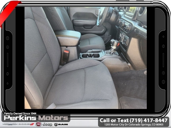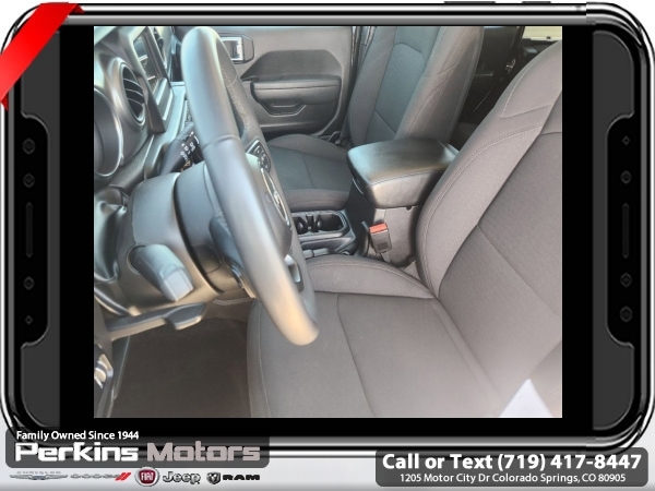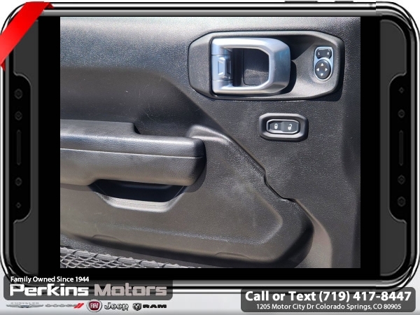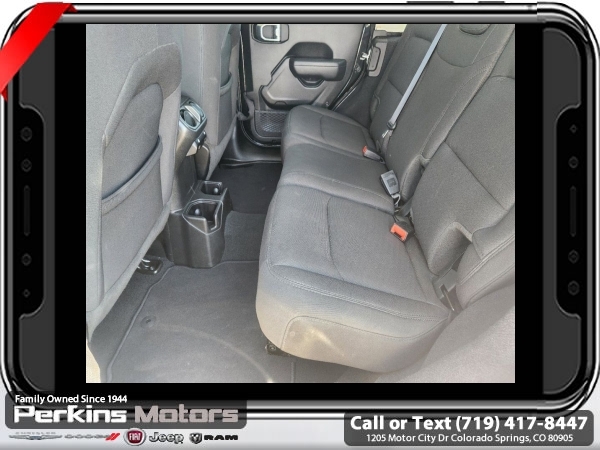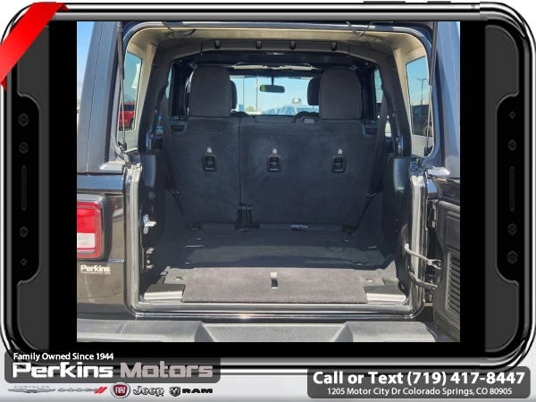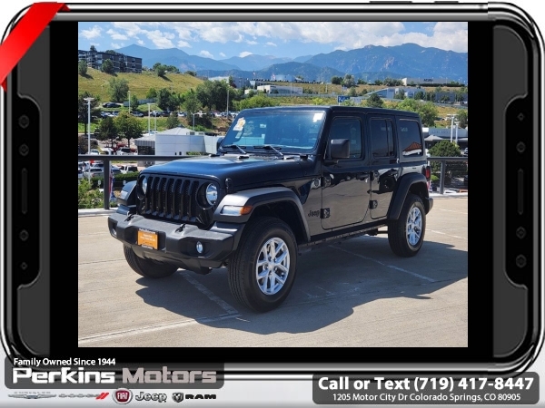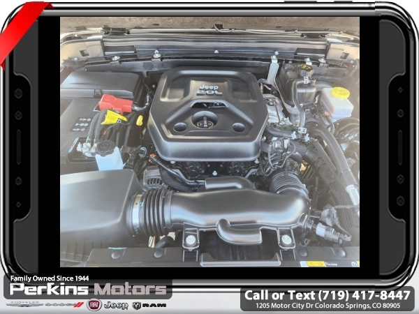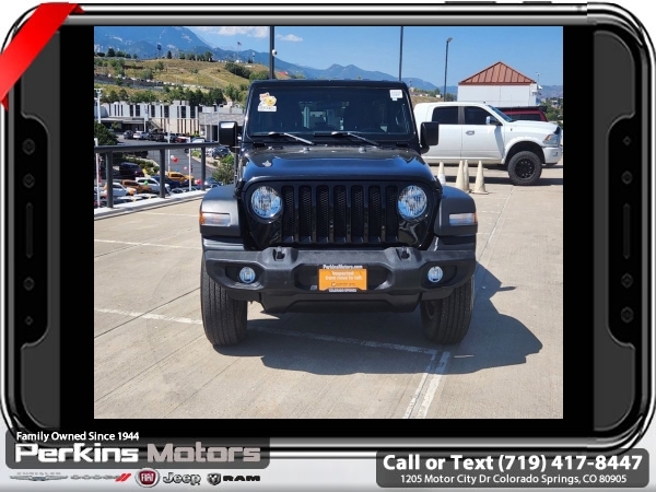 Black Clearcoat 4WD 2.0L I4 DOHC 8-Speed Automatic<br><br><br>Certified. FCA US LLC Certified Pre-Owned Details:<br><br> * Vehicle History<br> * Warranty Deductible: $100<br> * 125 Point Inspection<br> * Roadside Assistance<br> * Transferable Warranty<br> * Powertrain Limited Warranty: 84 Month/100,000 Mile (whichever comes first) from original in-service date<br> * Includes First Day Rental, Car Rental Allowance, and Trip Interruption Benefits. SiriusXM 3 month trial subscription<br> * Limited Warranty: 3 Month/3,000 Mile (whichever comes first) after new car warranty expires or from certified purchase date<br><br><br>CARFAX One-Owner. Clean CARFAX.<br><br>Check us out at www.perkinsmotors.com to see our specials! Since opening our doors in 1944, we’ve been proud to serve Colorado Springs, CO, and the surrounding areas of Pueblo, Castle Rock and Denver, CO. Throughout this time of being family owned for 80 years, we’ve maintained a firm commitment to our customers: to offer a wide selection of New Chrysler, Dodge, Fiat, Jeep, and Ram vehicles and quality pre-owned vehicles, and provide a quick, no-hassle car-buying process that ensures everyone drives off the lot satisfied with their purchase.<br><br><br>Quick Order Package 22S Sport S (Automatic Headlamps, Power Heated Mirrors, Remote Keyless Entry, Sun Visors w/Illuminated Vanity Mirrors, and Wheels: 17 x 7.5 Tech Silver Aluminum), FCA US LLC Certified Pre-Owned Certified, 3.45 Overall Top Gear Ratio, 4-Wheel Disc Brakes, 8 Speakers, ABS brakes, Air Conditioning, AM/FM radio, Apple CarPlay, Apple CarPlay/Android Auto, Aux Battery, Black 3-Piece Hard Top, Brake assist, Cloth Low-Back Bucket Seats, Compass, Cruise Control, Delay-off headlights, Driver door bin, Driver vanity mirror, Dual front impact airbags, Dual front side impact airbags, Electronic Stability Control, Emergency communication system: SiriusXM Guardian, Engine Oil Cooler, Front anti-roll bar, Front Bucket Seats, Front Center Armrest w/Storage, Front fog lights, Front reading lights, Google Android Auto, GPS Antenna Input, Integrated Center Stack Radio, Integrated roll-over protection, Integrated Voice Command w/Bluetooth, Low tire pressure warning, Non-Lock Fuel Cap w/o Discriminator, Normal Duty Suspension, Occupant sensing airbag, Outside temperature display, ParkView Rear Back-Up Camera, Passenger door bin, Passenger vanity mirror, Power steering, Radio data system, Radio: Uconnect 4 w/7 Display, Rear anti-roll bar, Rear reading lights, Split folding rear seat, Steering wheel mounted audio controls, Stop-Start Dual Battery System, Tachometer, Telescoping steering wheel, Tilt steering wheel, Traction control, Trip computer, USB Host Flip, Variably intermittent wipers, and Wheels: 17 x 7.5 Black Steel Styled.