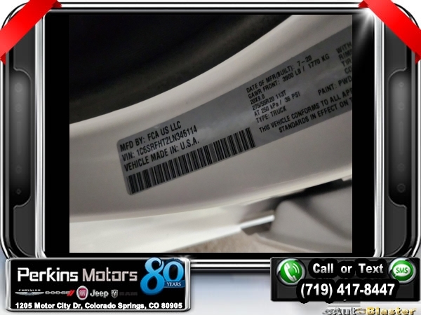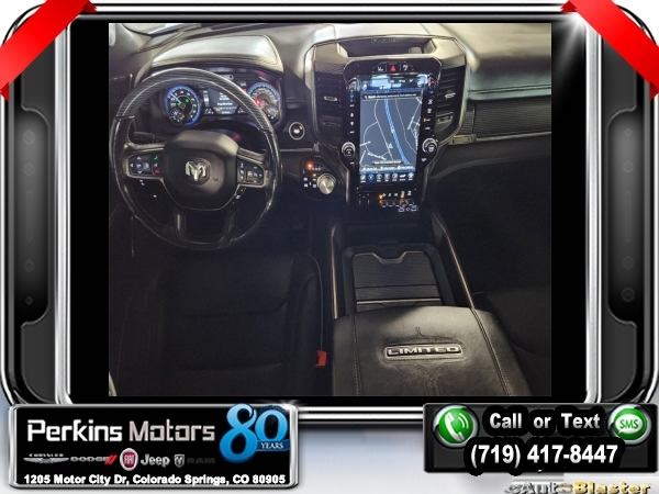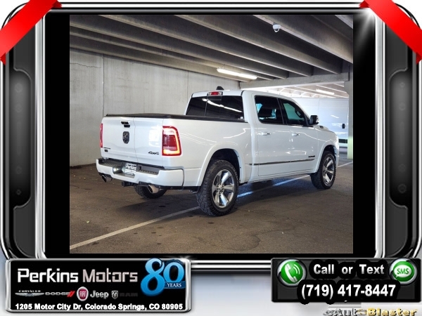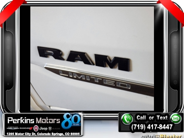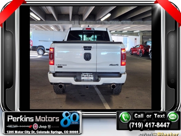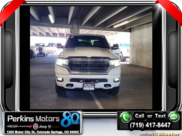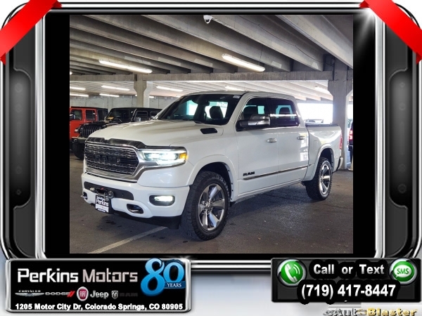 Ivory White Tri-Coat Pearlcoat 4WD HEMI 5.7L V8 Multi Displacement VVT 8-Speed Automatic<br><br>4 Adjustable Cargo Tie-Down Hooks, Adaptive Cruise Control w/Stop & Go, Bed Utility Group, Body Color Bumper Group, Body Color Front Bumper, Body Color Rear Bumper w/Step Pads, Deployable Bed Step, Dome Dual LED Reading Lamp, Dual-Pane Panoramic Sunroof, Full Speed Forward Collision Warning Plus, harman/kardon 19 Speaker Premium Sound, Lane Keep Assist, LED Dome/Reading Lamp, Limited Level 1 Equipment Group, Navigation System, No Satellite Coverage w/HI/AK/PR/VI/GU, Parallel & Perp Park Assist w/Stop, Pick-Up Box Lighting, Protection Group, Quick Order Package 25M Limited, Radio: Uconnect 12 w/Navigation, Ventilated Rear Seats.<br><br><br>Clean CARFAX.<br><br>Check us out at www.perkinsmotors.com to see our specials! Since opening our doors in 1944, we’ve been proud to serve Colorado Springs, CO, and the surrounding areas of Pueblo, Castle Rock and Denver, CO. Throughout this time of being family owned for 80 years, we’ve maintained a firm commitment to our customers: to offer a wide selection of New Chrysler, Dodge, Fiat, Jeep, and Ram vehicles and quality pre-owned vehicles, and provide a quick, no-hassle car-buying process that ensures everyone drives off the lot satisfied with their purchase.<br><br><br>Awards:<br> * JD Power Automotive Performance, Execution and Layout (APEAL) Study<br><br>Bed Utility Group (4 Adjustable Cargo Tie-Down Hooks, Deployable Bed Step, and Pick-Up Box Lighting), Body Color Bumper Group (Body Color Front Bumper and Body Color Rear Bumper w/Step Pads), Limited Level 1 Equipment Group (Adaptive Cruise Control w/Stop & Go, Full Speed Forward Collision Warning Plus, Lane Keep Assist, Parallel & Perp Park Assist w/Stop, and Ventilated Rear Seats), Protection Group, Quick Order Package 25M Limited, Dome Dual LED Reading Lamp, Dual-Pane Panoramic Sunroof, harman/kardon 19 Speaker Premium Sound, LED Dome/Reading Lamp, Navigation System, No Satellite Coverage w/HI/AK/PR/VI/GU, Radio: Uconnect 12 w/Navigation, 10 Speakers, 3.21 Rear Axle Ratio, 3.92 Rear Axle Ratio, 33 Gallon Fuel Tank, 4-Wheel Disc Brakes, 48V Belt Starter Generator, ABS brakes, Adjustable pedals, Air Conditioning, Alloy wheels, AM/FM radio: SiriusXM with 360L, Anti-Spin Differential Rear Axle, Apple CarPlay/Android Auto, Audio memory, Auto High-beam Headlights, Auto-dimming door mirrors, Auto-dimming Rear-View mirror, Auto-leveling suspension, Automatic temperature control, Bodyside moldings, Brake assist, Bumpers: chrome, Compass, Cruise Control, Delay-off headlights, Driver door bin, Driver vanity mirror, Dual front impact airbags, Dual front side impact airbags, Electronic Stability Control, Emergency communication system: SiriusXM Guardian, Front anti-roll bar, Front Bucket Seats, Front Center Armrest w/Storage, Front dual zone A/C, Front fog lights, Front reading lights, Front wheel independent suspension, Fully automatic headlights, Garage door transmitter, Genuine wood console insert, Genuine wood dashboard insert, Genuine wood door panel insert, Heated door mirrors, Heated front seats, Heated rear seats, Heated steering wheel, Illuminated entry, Leather steering wheel, Low tire pressure warning, Manufacturer's Statement of Origin, Memory seat, Multi-Function Tailgate, Occupant sensing airbag, Outside temperature display, Overhead airbag, Overhead console, Panic alarm, ParkView Rear Back-Up Camera, Passenger door bin, Passenger vanity mirror, Pedal memory, Power door mirrors, Power driver seat, Power passenger seat, Power steering, Power windows, Premium Leather Trimmed Bucket Seats, Radio data system, Rain sensing wipers, Rear anti-roll bar, Rear seat center armrest, Rear step bumper, Rear window defroster, Remote keyless entry, Security system, Split folding rear seat, Steering wheel mounted audio controls, Tachometer, Telescoping steering wheel, Tilt steering wheel, Traction control, Trailer Brake Control, Trip computer, Turn s