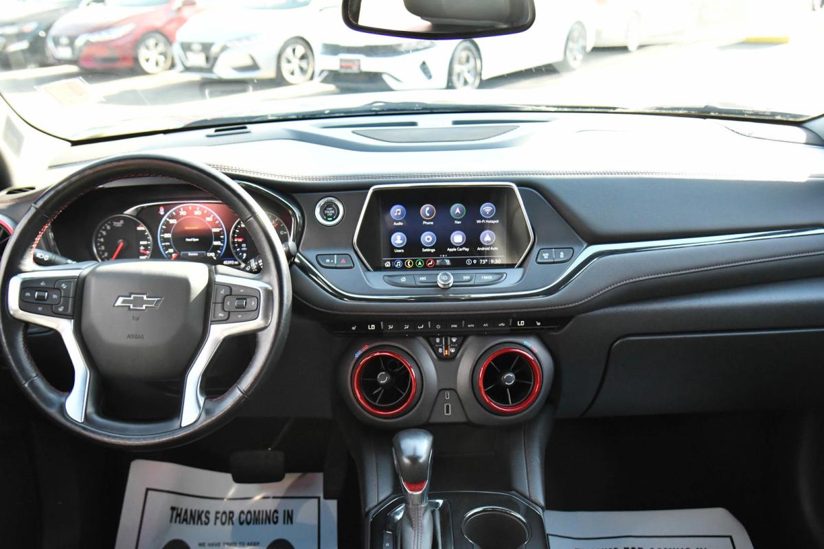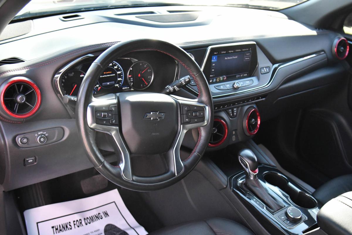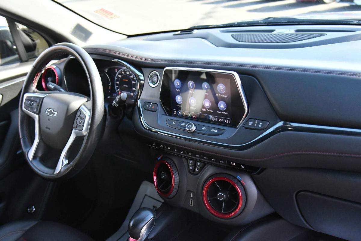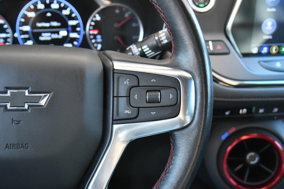 Scores 27 Highway MPG and 20 City MPG! This Chevrolet Blazer boasts a Gas V6 3.6L/ engine powering this Automatic transmission. WHEELS, 21 (53.3 CM) GLOSS BLACK ALUMINUM, TRANSMISSION, 9-SPEED AUTOMATIC, ELECTRONICALLY-CONTROLLED with overdrive, includes Driver Shift Control (STD), TIRES, P265/45R21 ALL-SEASON BLACKWALL.*This Chevrolet Blazer Comes Equipped with These Options *LICENSE PLATE FRONT MOUNTING PACKAGE (will be forced on orders with ship-to states that require a front license plate) , SEATS, FRONT BUCKETS (STD), RS PREFERRED EQUIPMENT GROUP Includes Standard Equipment, JET BLACK, PERFORATED LEATHER-APPOINTED SEAT TRIM, ENGINE, 3.6L V6, SIDI, DOHC WITH VARIABLE VALVE TIMING (VVT) and Active Fuel Management with Stop/Start (308 hp [229 kW] @ 6600 rpm, 270 lb-ft of torque [366 N-m] @ 5000 rpm) (STD), BLACK, AXLE, 3.49 FINAL DRIVE RATIO, AUDIO SYSTEM, CHEVROLET INFOTAINMENT 3 PLUS SYSTEM with connected Navigation, 8 diagonal HD color touchscreen, AM/FM stereo, Bluetooth audio streaming for 2 active devices, Apple CarPlay and Android Auto capable, enhanced voice recognition, in-vehicle apps, cloud connected personalization for select infotainment and vehicle settings. Subscription required for enhanced and connected services after trial period. (STD), Wipers, front variable-speed, intermittent with washers, Wiper, rear intermittent with washer.